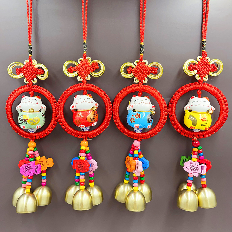 熱い販売の新しいセラミック招き猫風鈴ペンダントホームカーペンダント観光エリア熱い販売工芸品風鈴