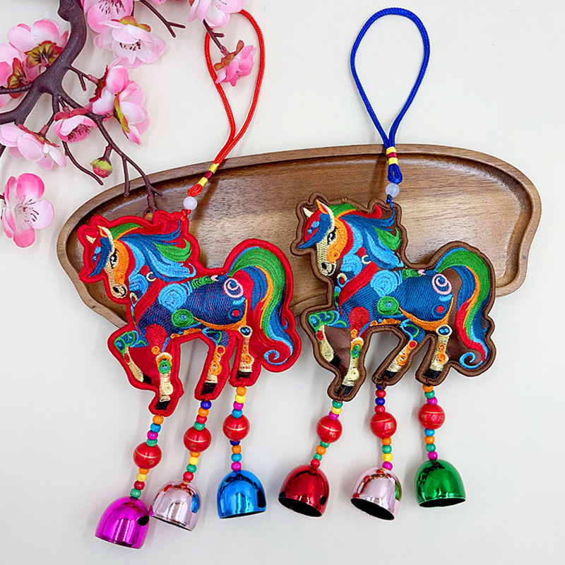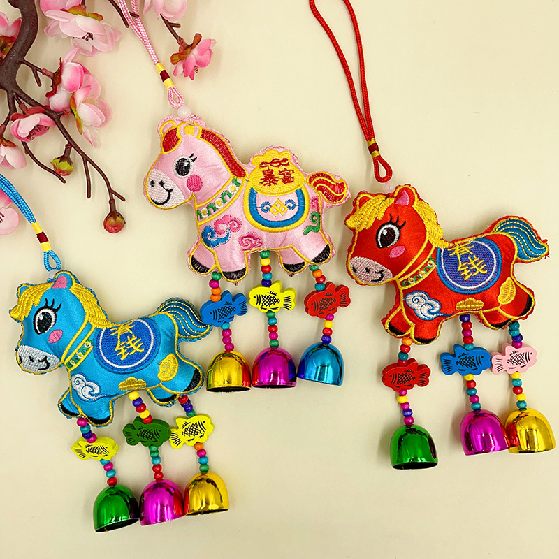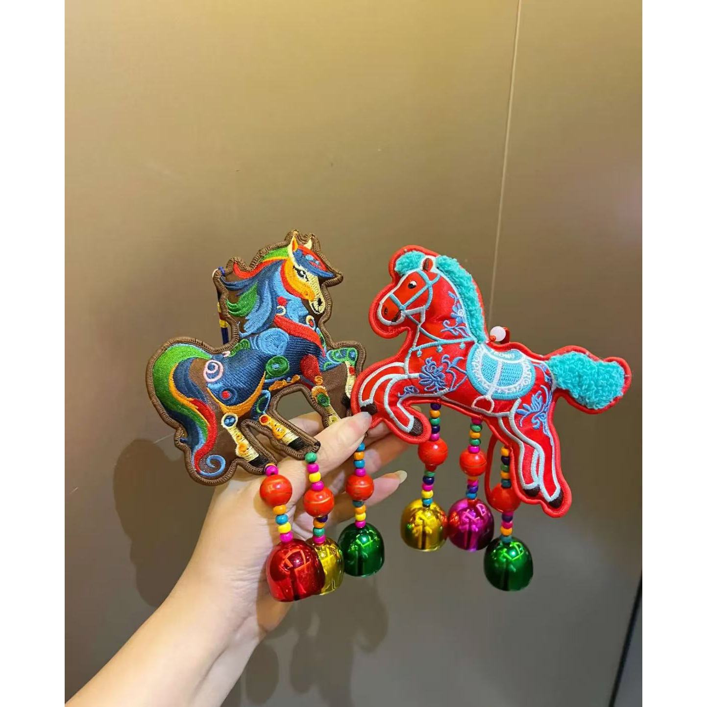新款新年生肖马风铃挂件刺绣马铃铛挂饰汽车居家香囊挂饰年会礼物