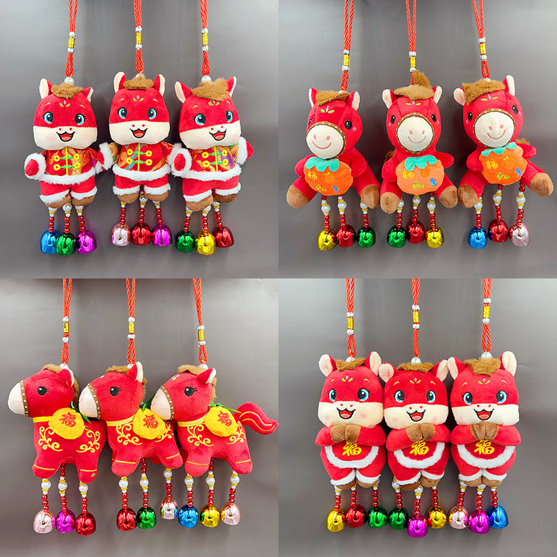 马年吉祥物挂件生肖马铃铛 公仔马玩偶年会礼品娃娃毛绒玩具批发