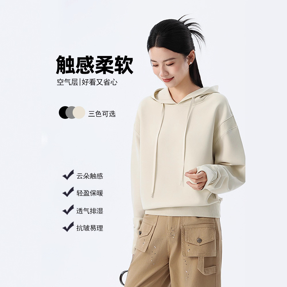 秋季新款云感空气层白色连帽卫衣女宽松显瘦运动跑步休闲百搭上衣