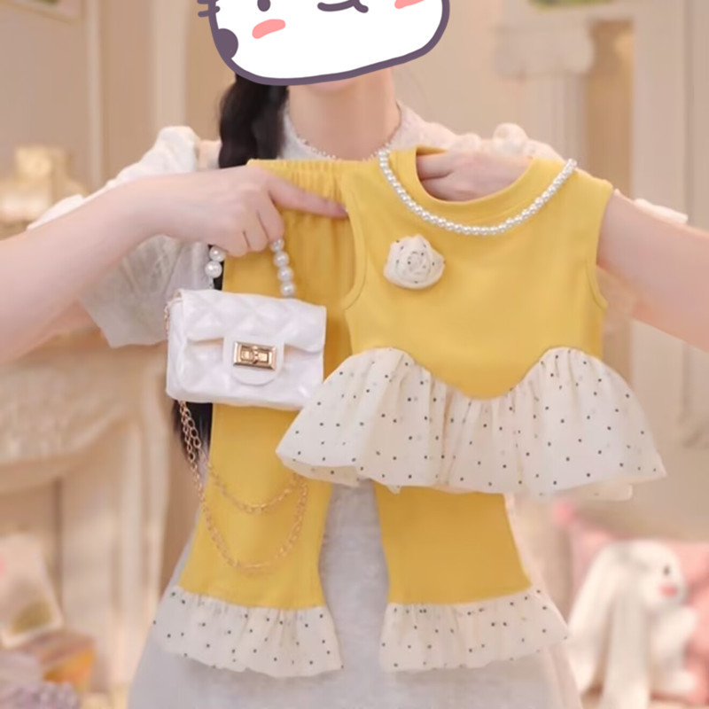 女の子の夏服セット2025女の赤ちゃんの洋気の2つのセットの流行の子供服の韓国版の子供服の夏のベスト