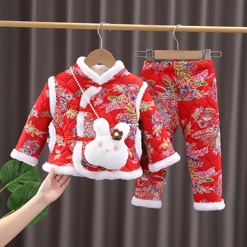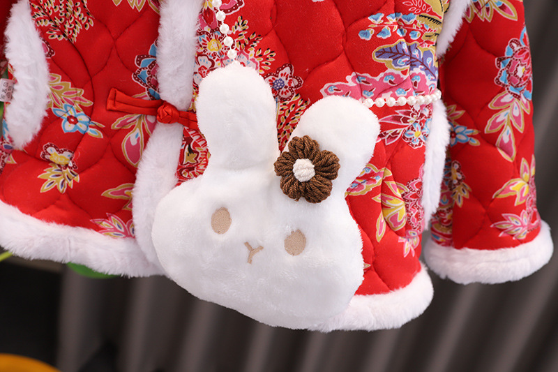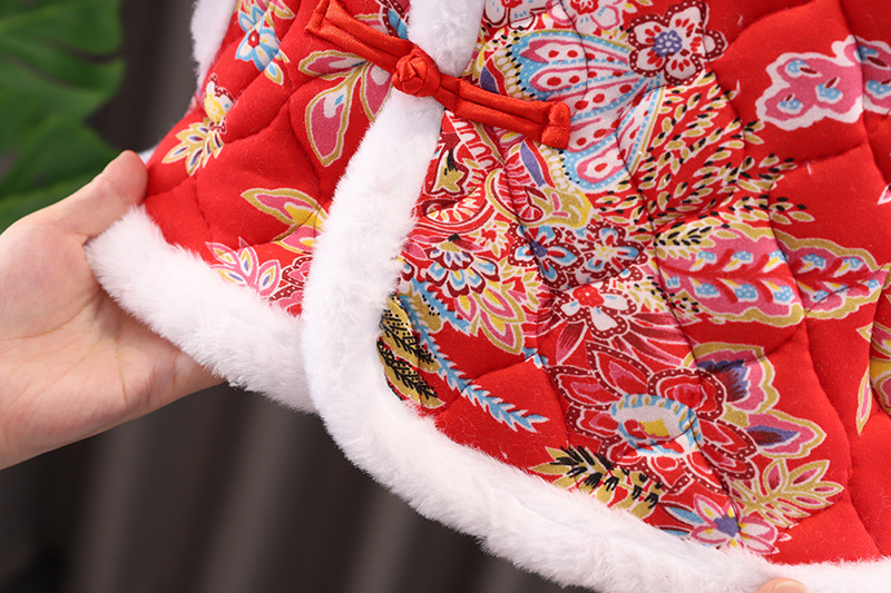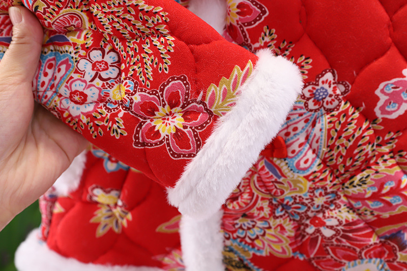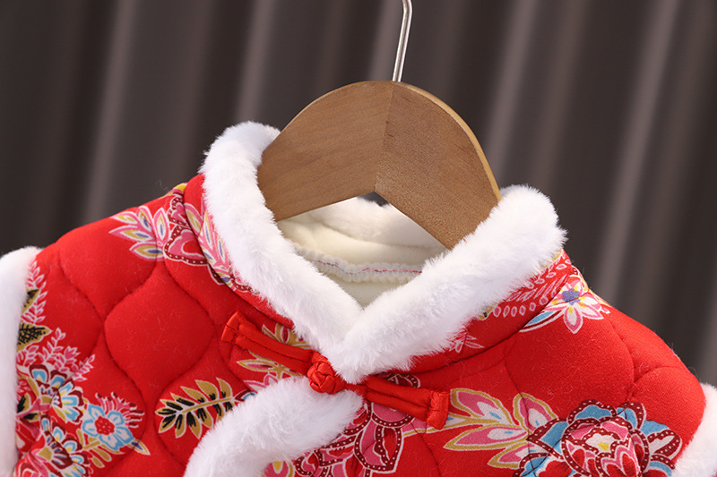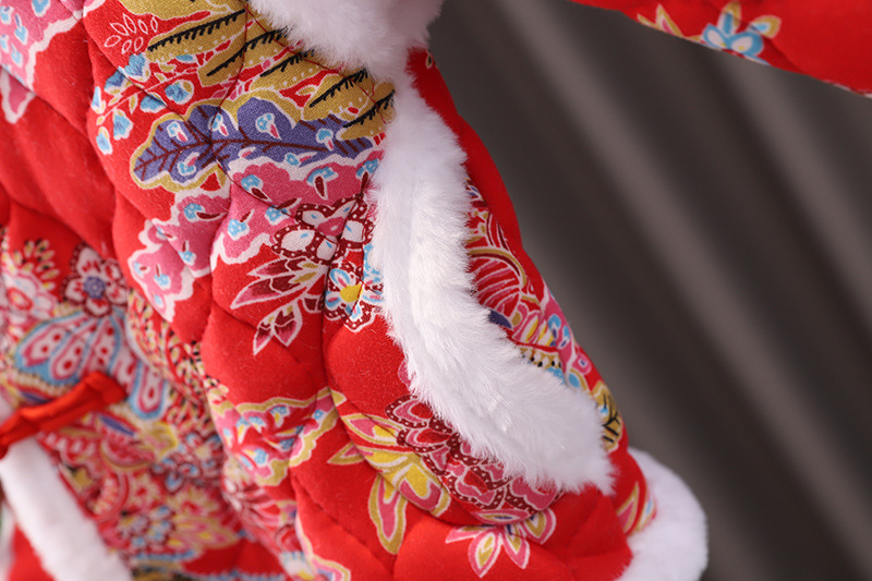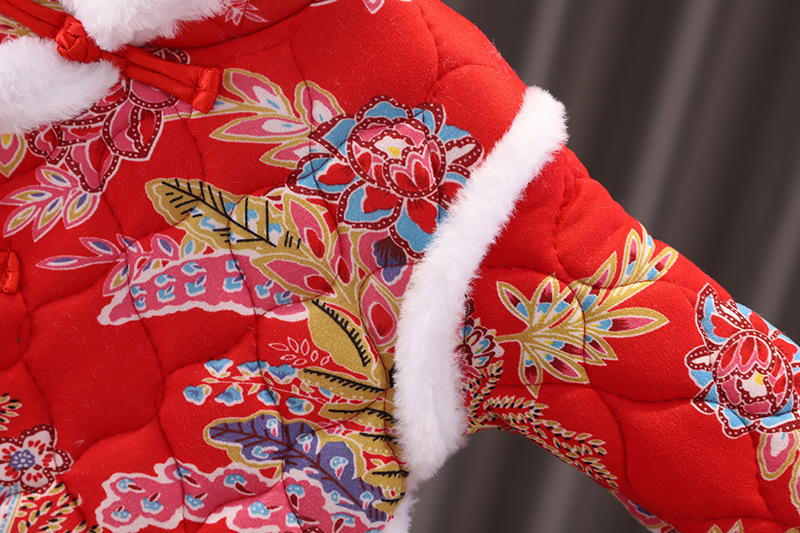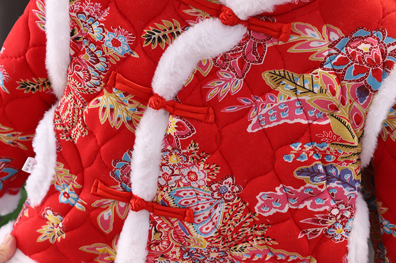 女の子中国風拝年服冬の女の子の赤ちゃんは1歳のドレスを厚くしてお祝いします。