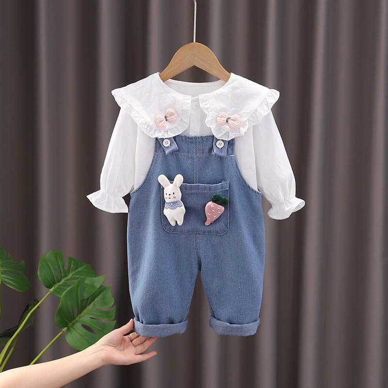 WW 女の子用秋服セット カジュアル 1-3歳 女児 春秋用スウェットシャツ2点セット 子供服 秋 3-4歳 サスペンダー付き