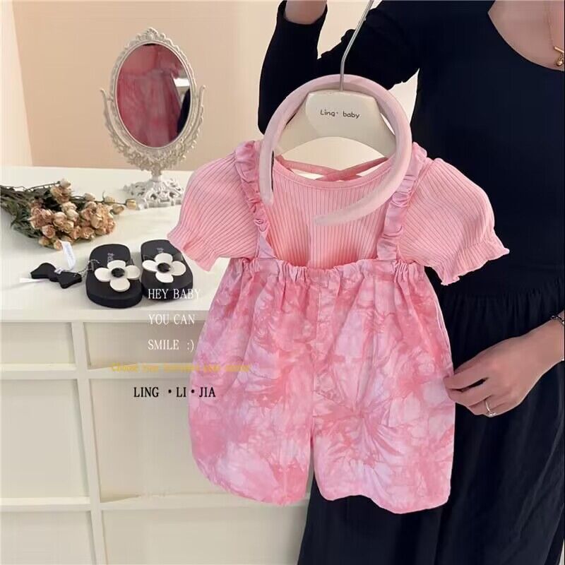 女の赤ちゃんサマースーツ 2025 1歳半ベビー6-8ヶ月ツーピースセット女の子サマーサスペンダー子供1-4歳