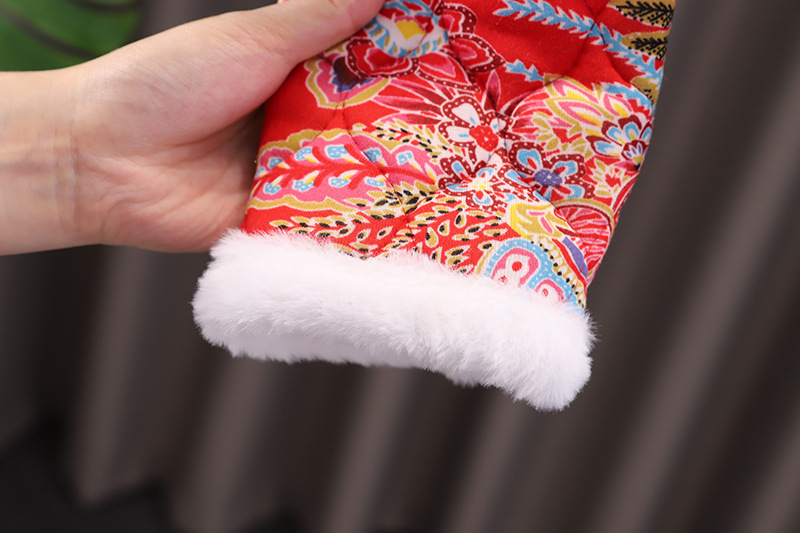 女の子の東北大花綿入れの上着の冬の女の子の赤ちゃんのベルベットと綿のスーツの中国風の厚い新年の服の冬の服