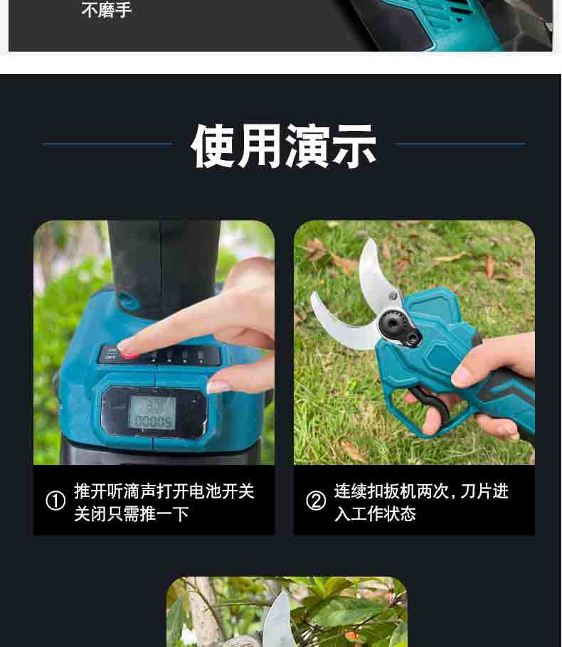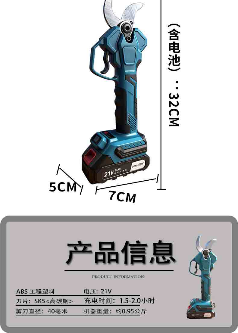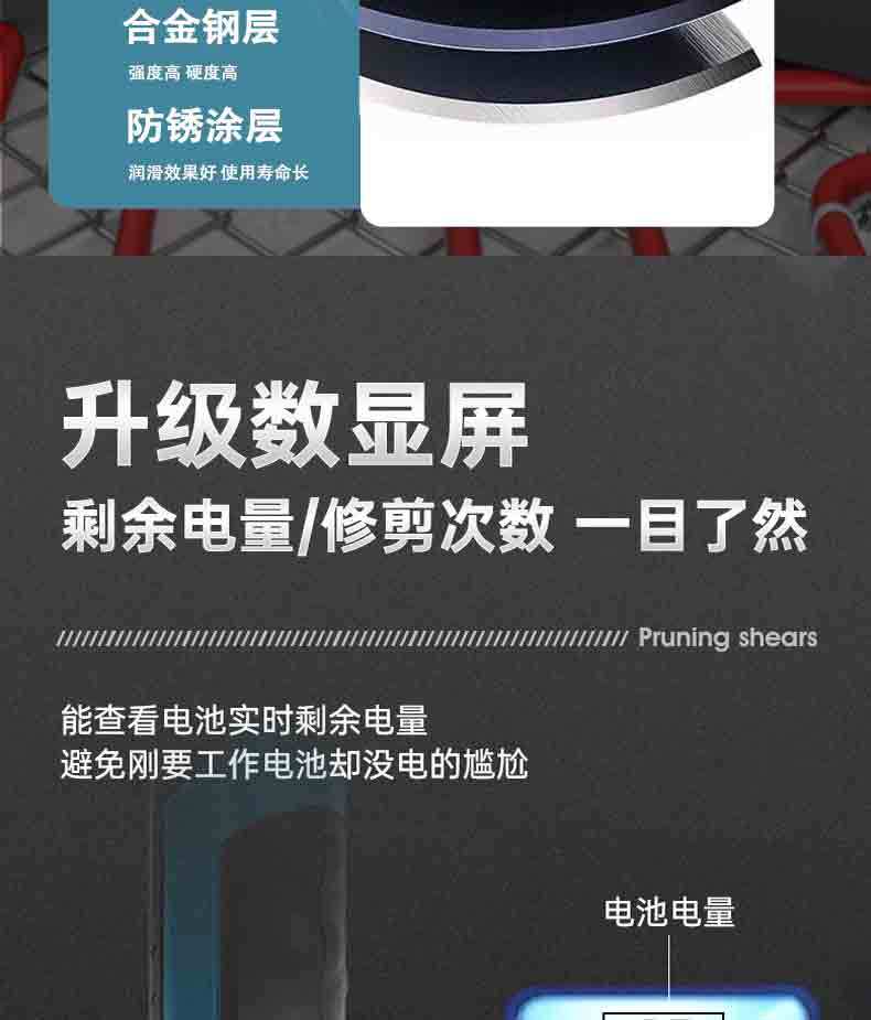 无刷电剪刀锂电树枝剪园林果园带数显充电式剪刀跨境电商外贸工具