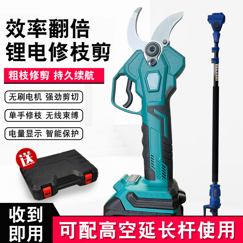 外贸电动修枝剪便携式家用锂电剪刀充电式园林果树剪跨境批发高枝