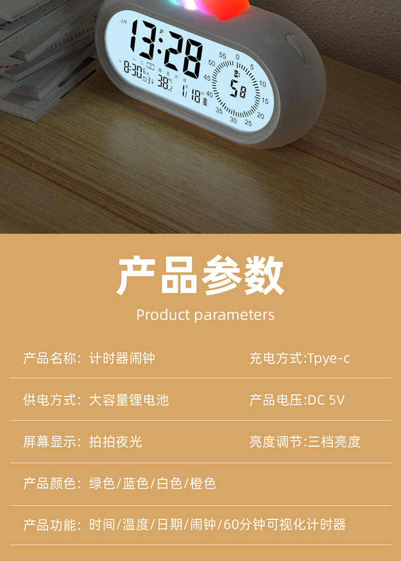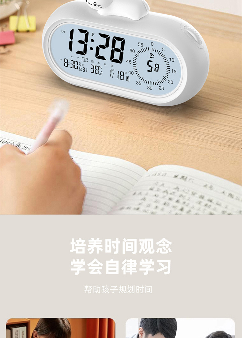 智能闹钟电子定时器倒计时提醒器自律时间管理器小学生英语学习