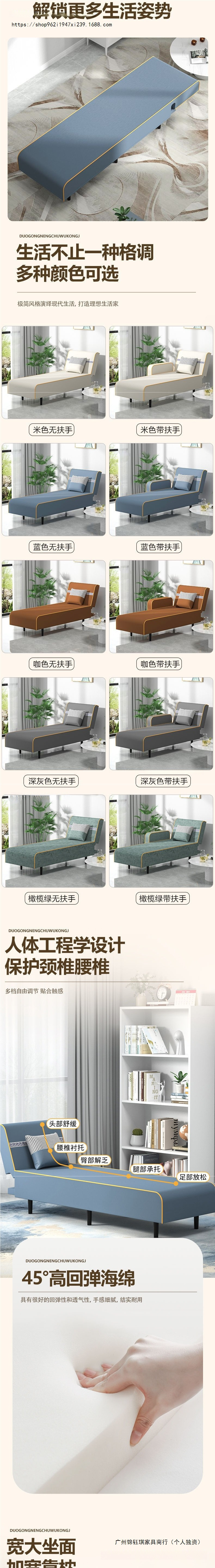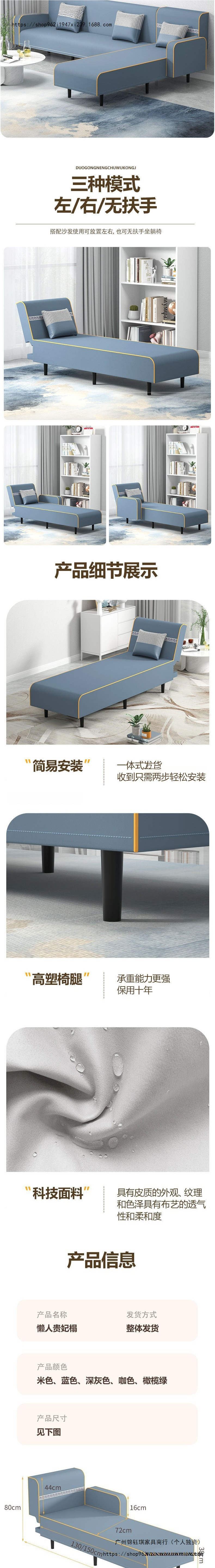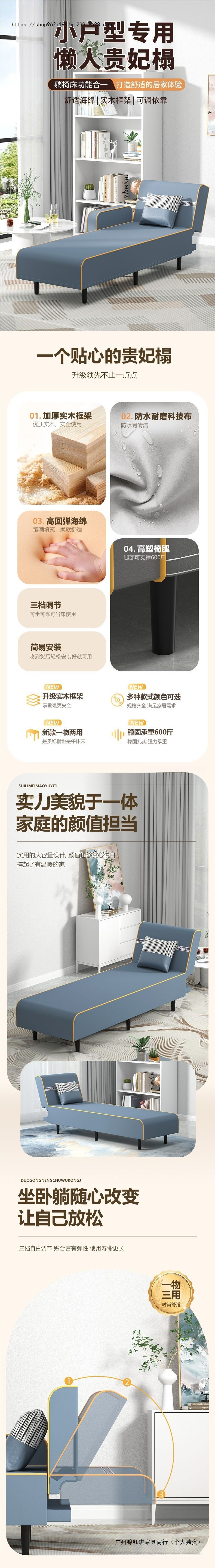 贵妃榻折叠多功能可拆洗科技布贵妃椅客厅躺椅免洗简约现代商用木