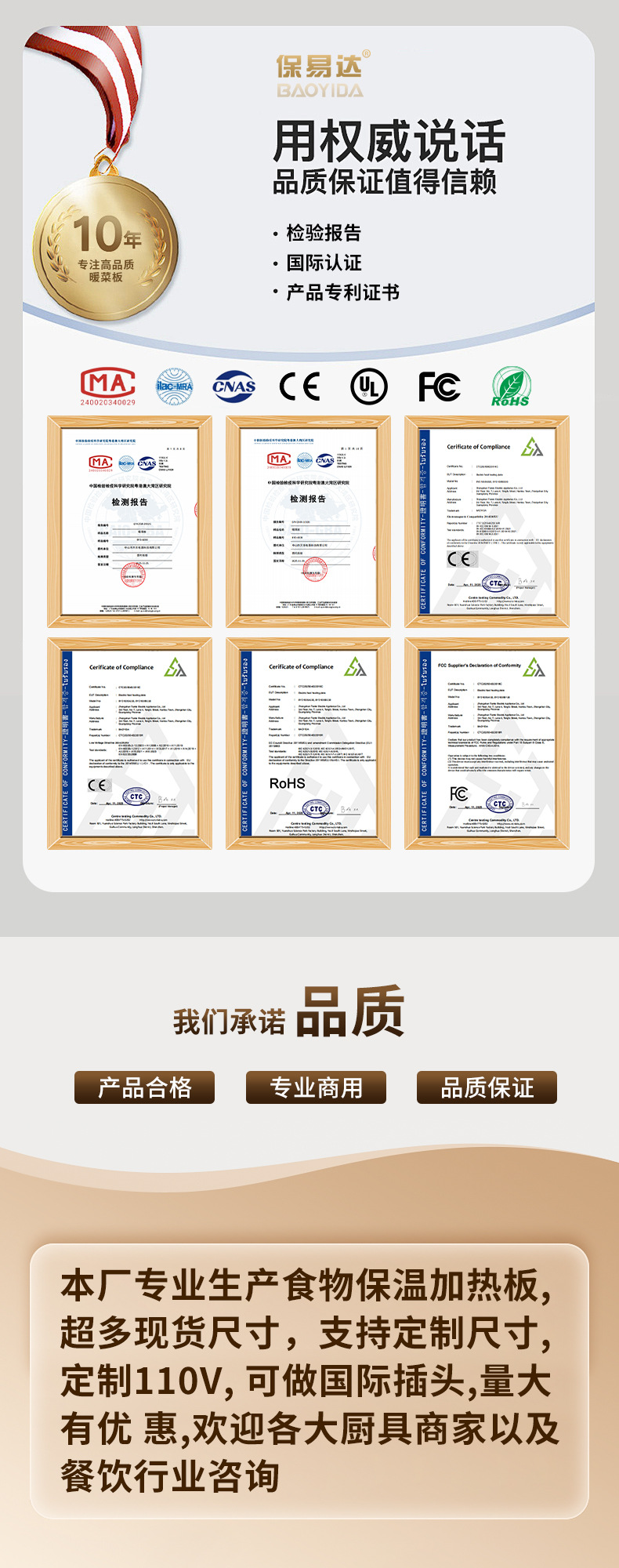 国境を越えた電気加熱トレイ、卓上加熱プレート、業務用温菜ボード、断熱ボード、恒温ボード、食品保温加工品