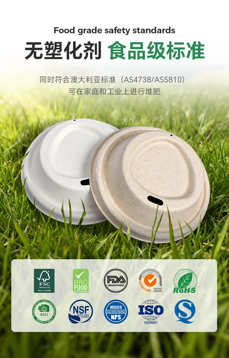 メーカースポット使い捨て環境保護サトウキビパルプカップ蓋コーヒーミルクティー豆乳分解性パルプ成形カップ蓋