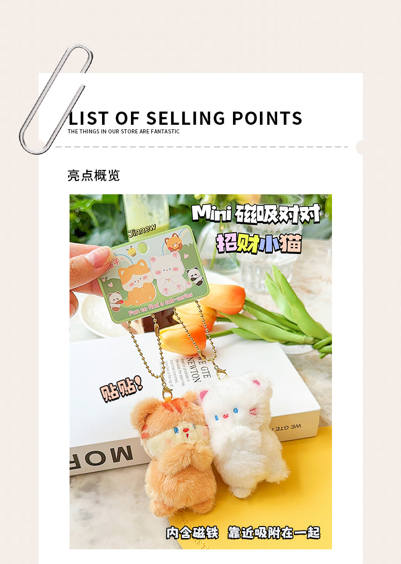 毛绒磁吸小猫公仔搭子对装闺蜜情侣一对书包挂件创意礼品车钥匙扣