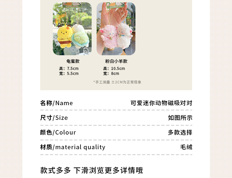 【精品店热销】对装小动物磁吸对对毛绒钥匙扣挂件闺蜜情侣小礼物