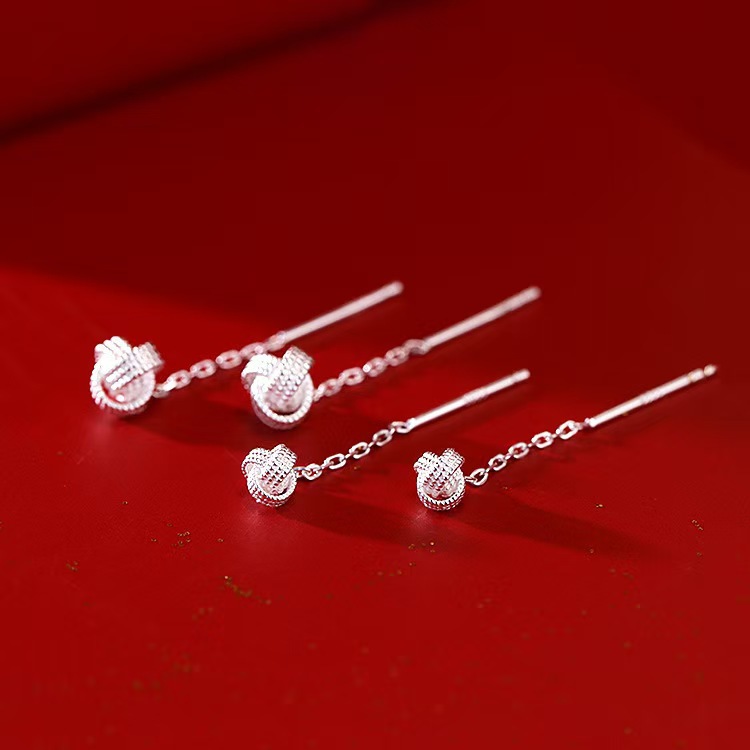 2025新款爆款轻奢耳钉高级感短款吉祥如意结流苏耳线小众耳饰女