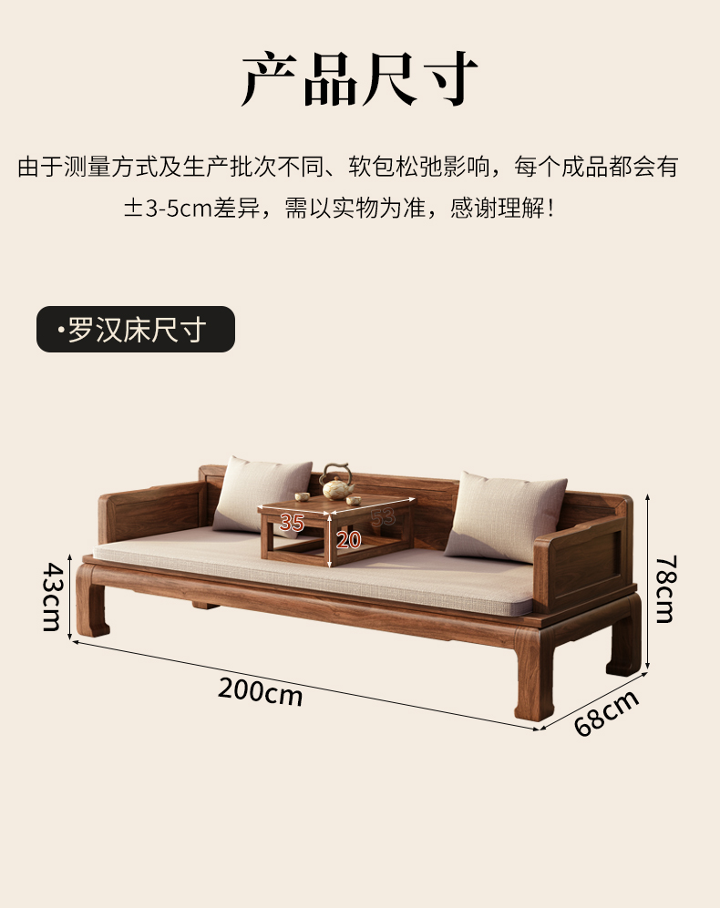 新中式实木罗汉床客厅中式罗汉榻客厅檀木沙发床中式家具宋氏美学