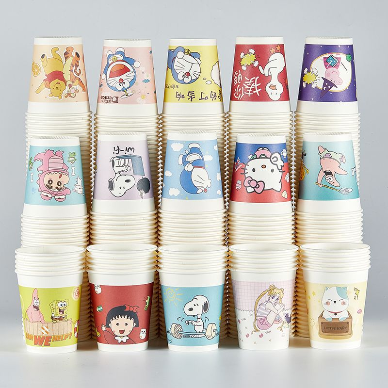 使い捨てカップ紙コップ水カップ漫画かわいいパターン商業オフィス家庭用食品グレード 250 ミリリットル増粘