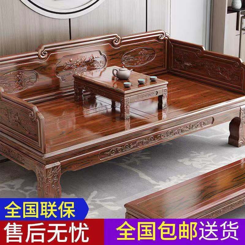 罗汉床新中式实木仿古沙发明清古典民宿原木金花梨木雕花罗汉榻