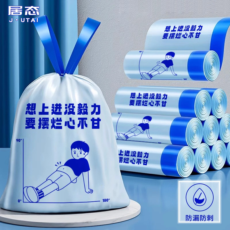 新款印花免撕抽绳垃圾袋家用厨房加大加厚防漏大号收口垃圾袋批发