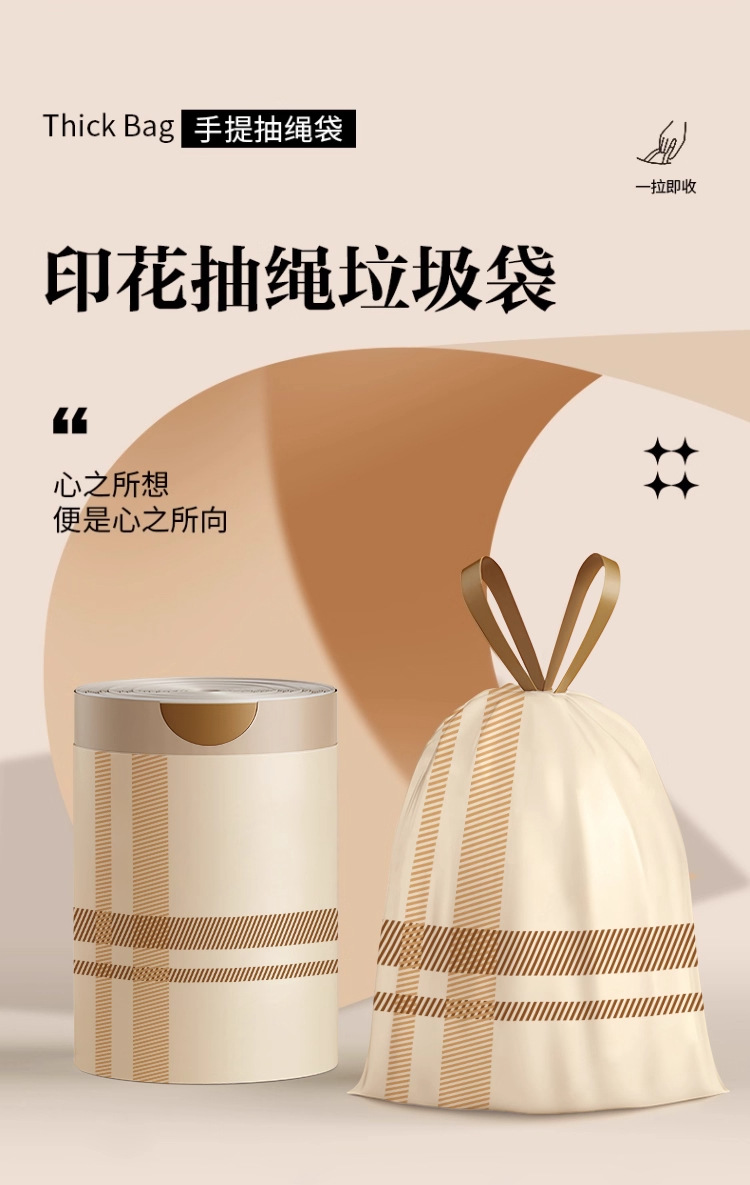 印花抽绳垃圾袋家用加厚手提式客厅免撕特厚厨房专用大号塑料袋子