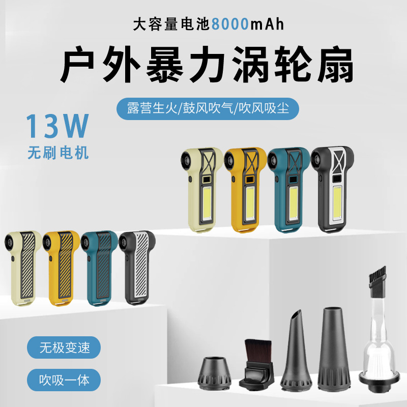 新款私模手持暴力涡轮风扇13万转高功率无级变速吹吸一体户外露营