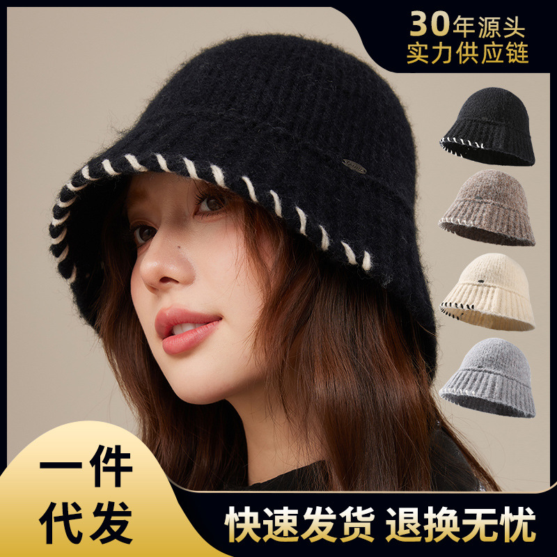 保暖针织毛线帽女秋冬天圆顶素颜显脸小渔夫帽韩系休闲百搭水桶帽