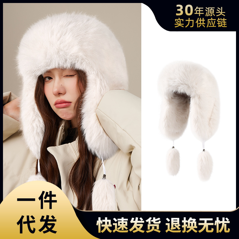 秋冬新款雷锋帽女户外防寒加厚保暖毛绒绒帽子可爱显脸小护耳帽