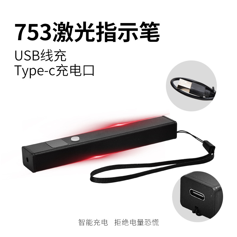 753 Type-C 激光笔充电激光灯远射强光激光手电智能电量数显