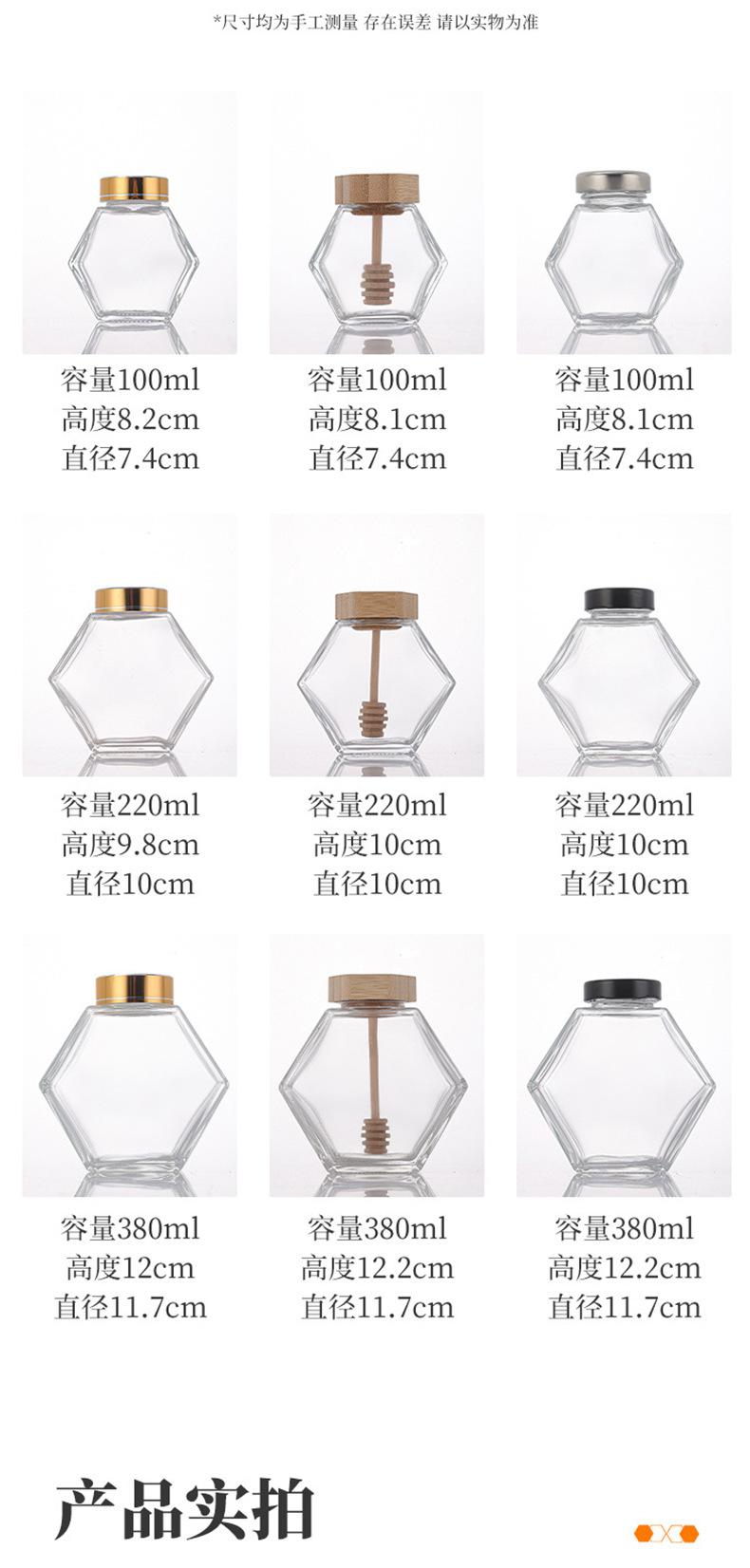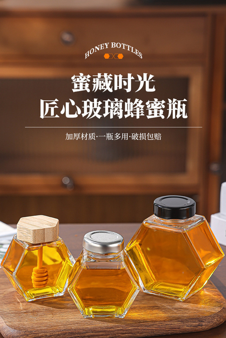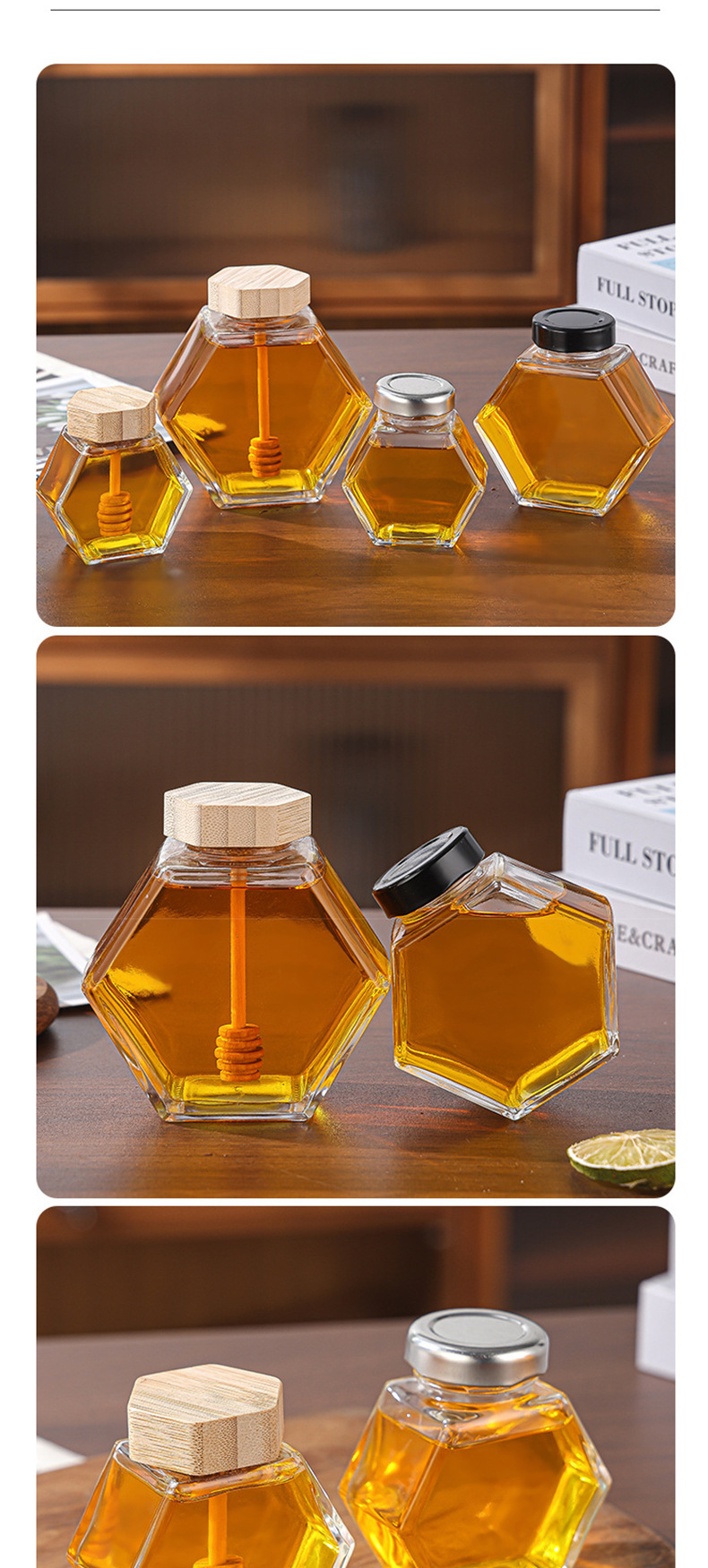 透明六角蜂蜜瓶密封貯蔵タンク食品収納缶詰唐辛子キャビア分注ガラス瓶卸売り