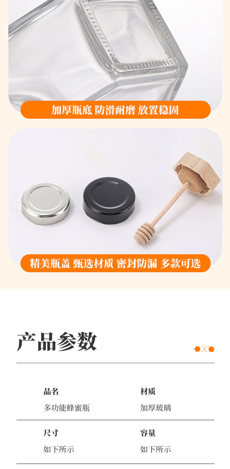 家庭用蜂蜜ボトル詰め替えボトル保存缶チリソースジャム食品密封空ボトル透明ガラス蜂蜜ボトル