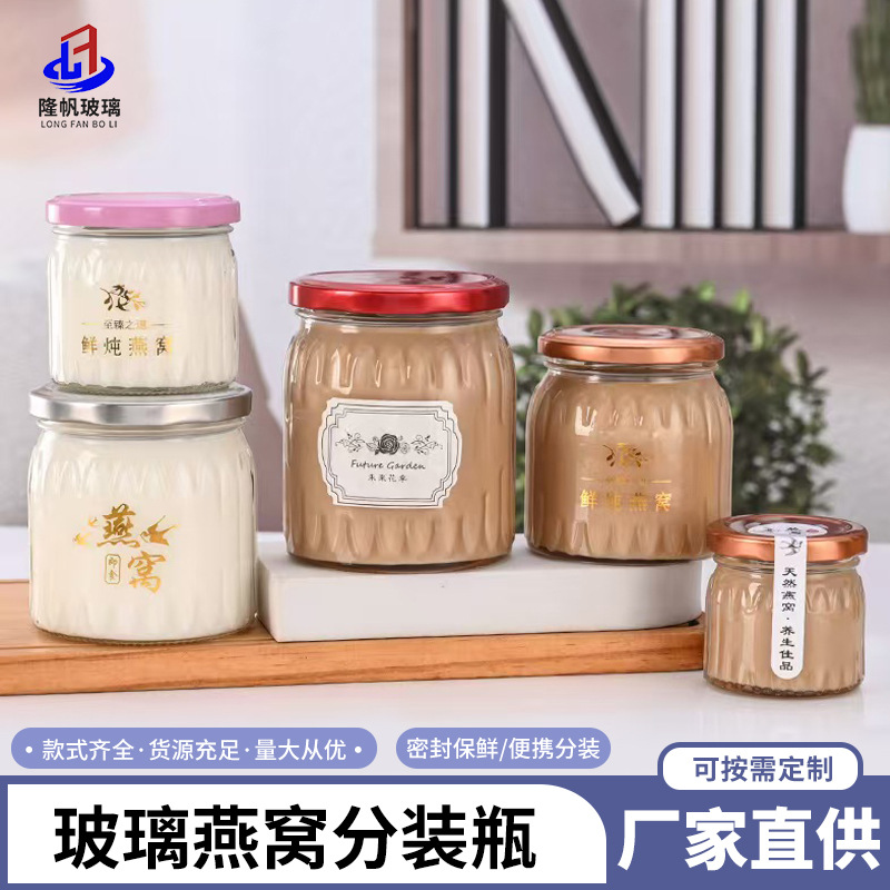 燕窩分装瓶、新鮮な煮込み魚膠、白きくらげ瓶、高温耐性、蒸し可能、ガラス瓶、密封蜂蜜瓶、高耐熱性