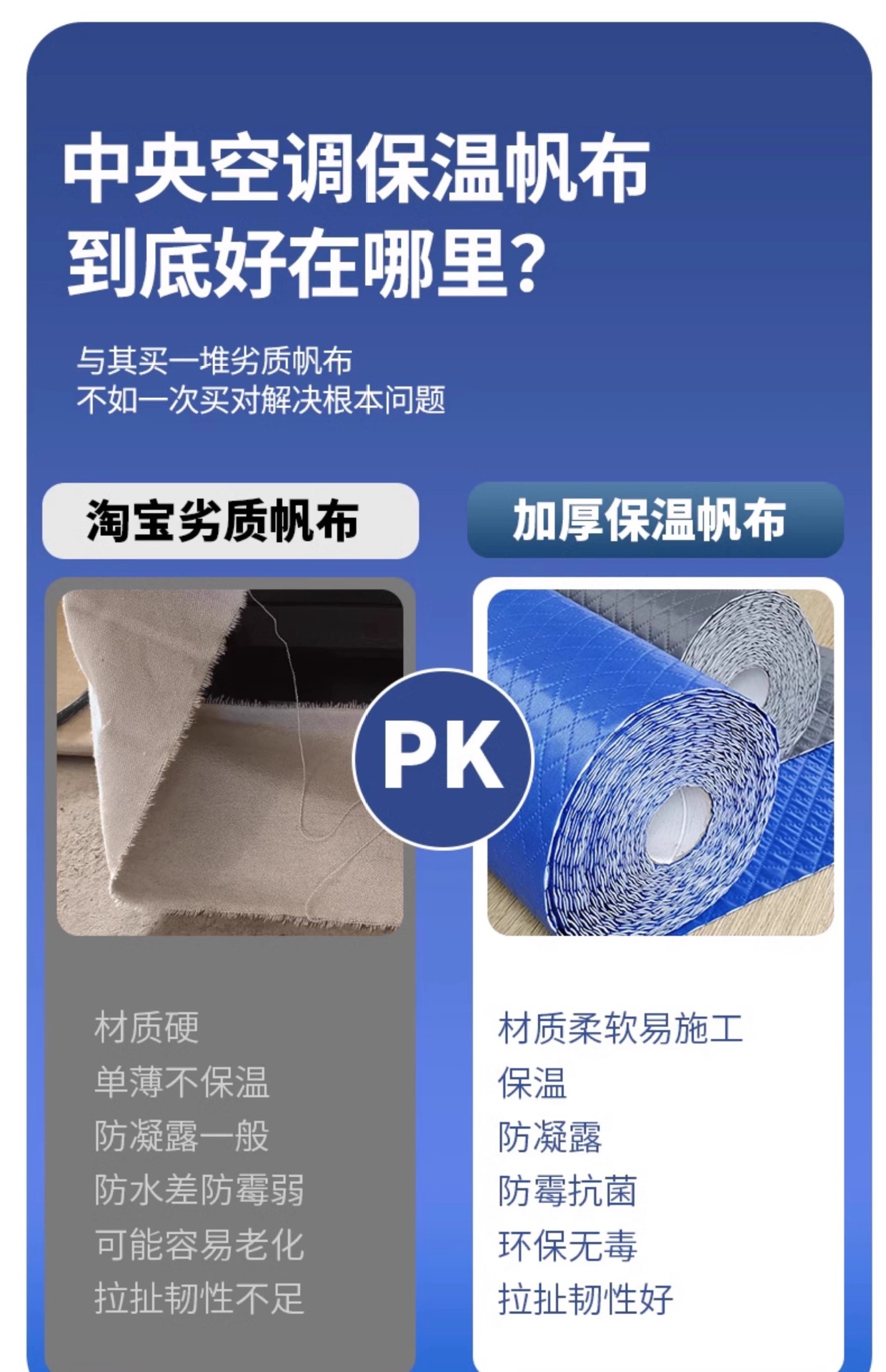 空调帆布保温软接帆布高分子抗菌防霉纳米帆布中央空调保温软帆布