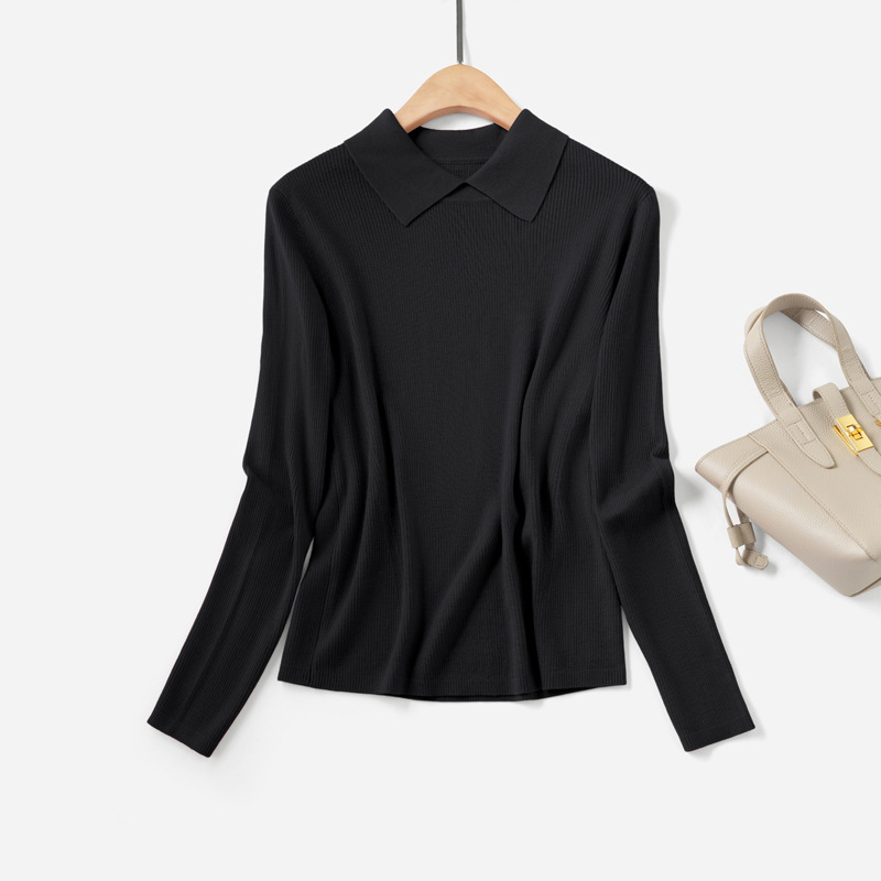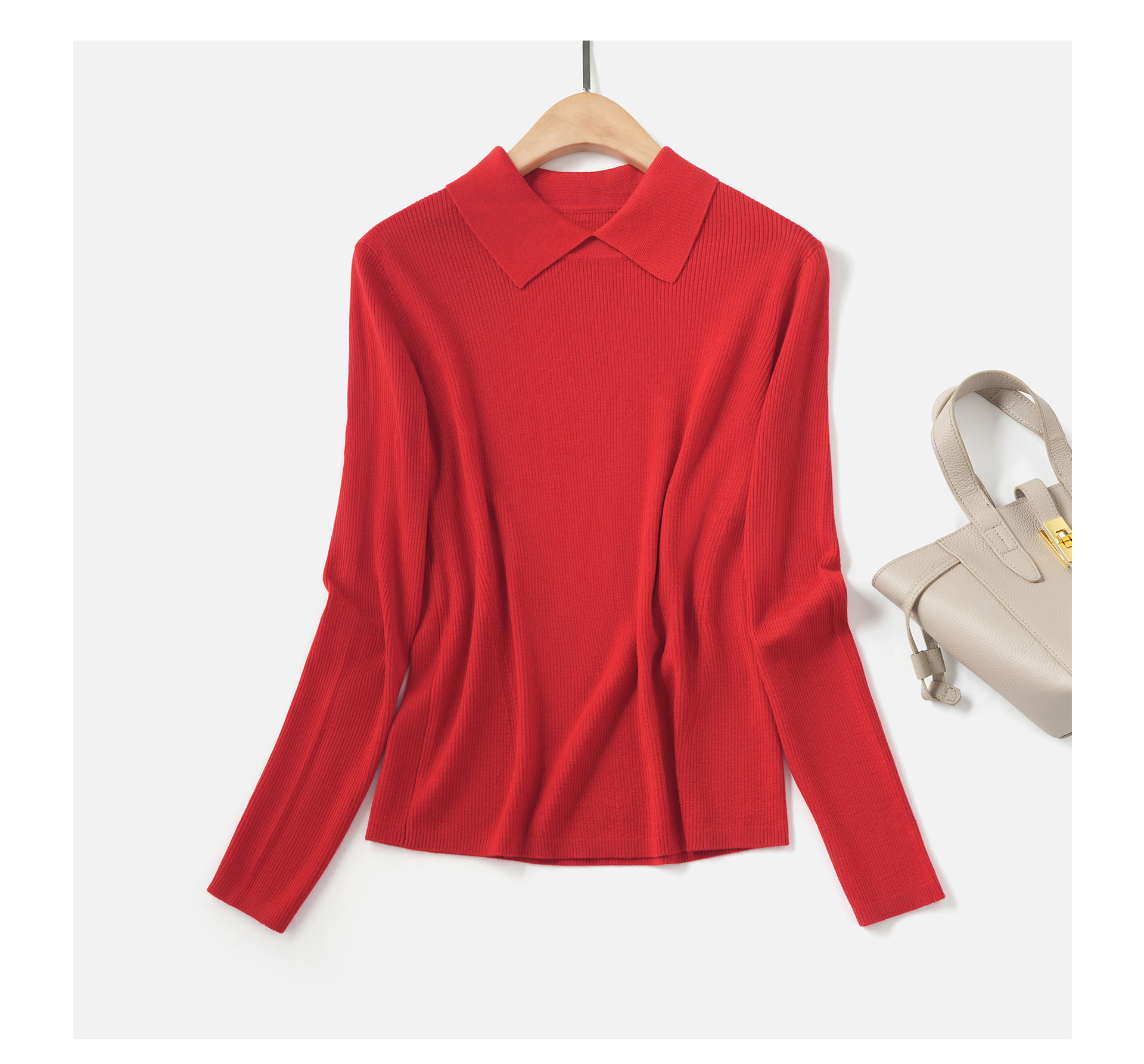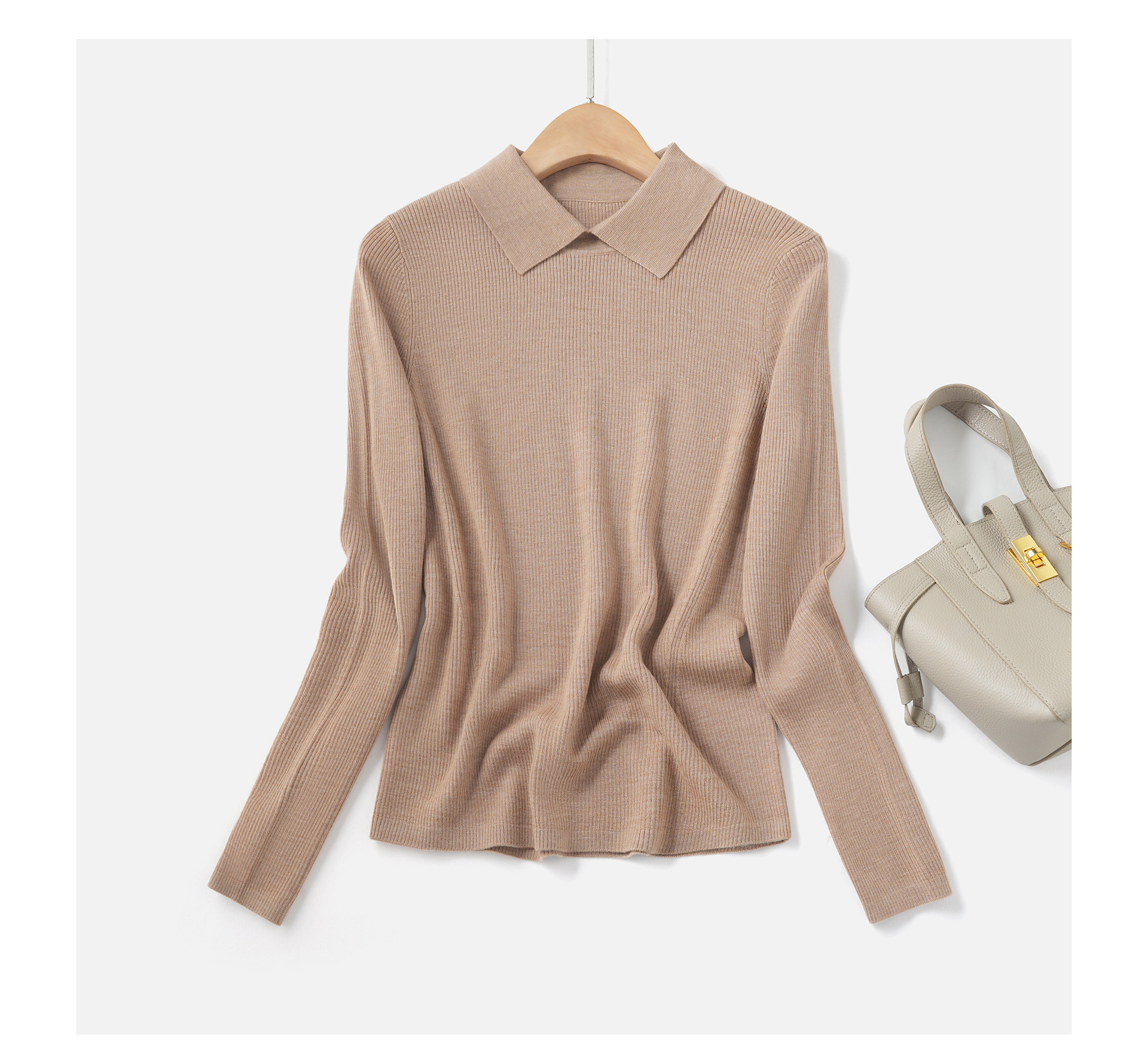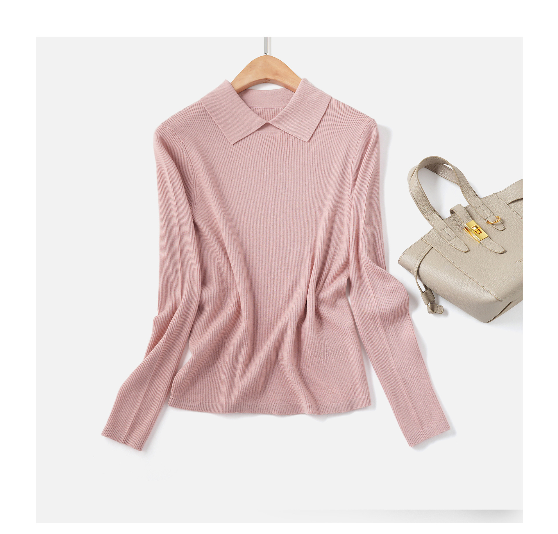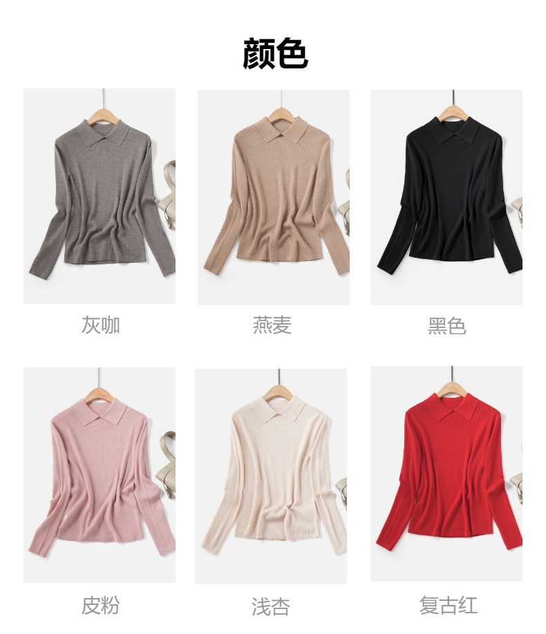 女装100%羊毛polo领毛衣针织衫内搭上衣女秋冬新款修身打底羊毛衫