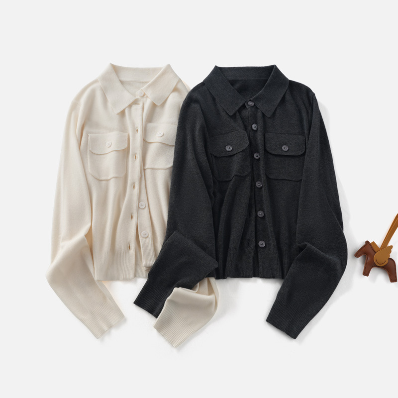 LP同款气质毛衣女秋冬新款polo领纯色100%美利奴羊毛针织开衫外套