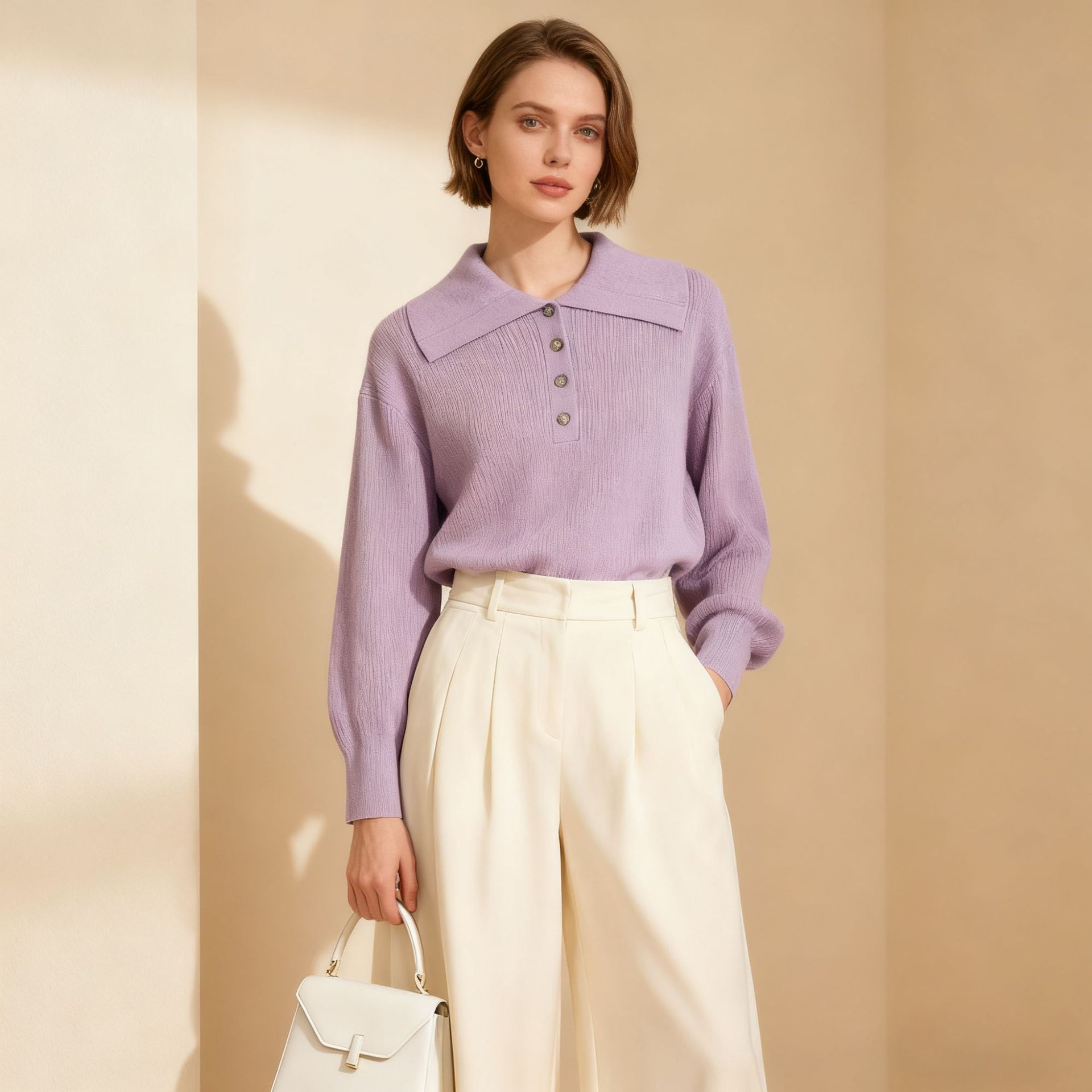 ED同款polo领长袖羊毛针织衫外套秋冬新款女装显瘦修身慵懒风上衣