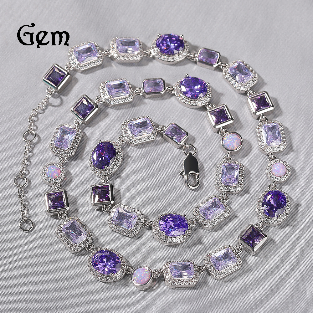 跨境热销时尚轻奢高级感10mm几何型紫色宝石项链男女嘻哈潮流饰品