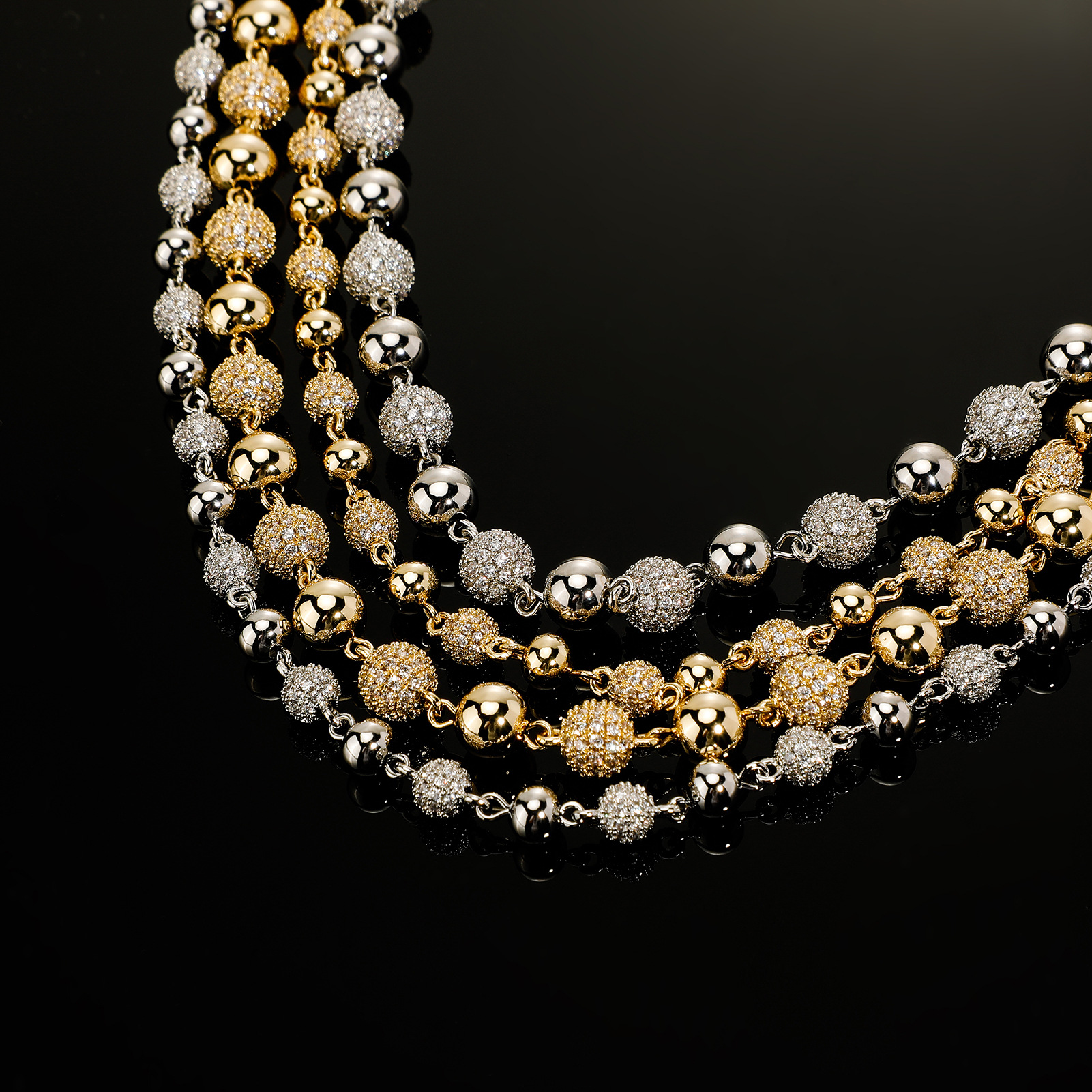 欧美亚马逊6-8MM满钻圆球冰珠项链女士手链嘻哈铜镶锆石项链批发