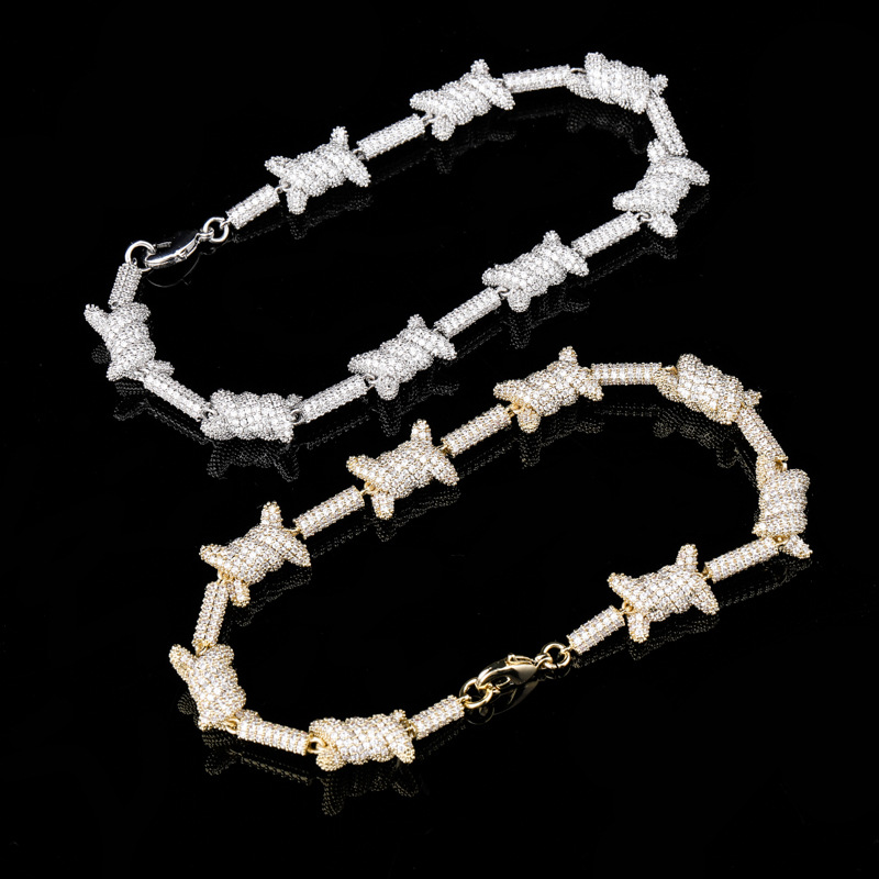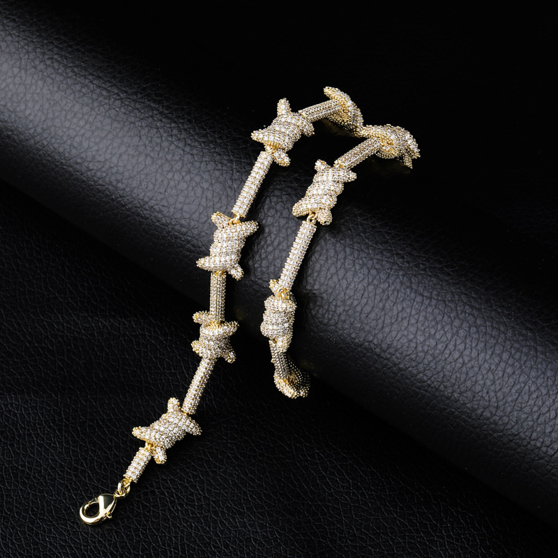跨境亚马逊INS欧美嘻哈保色铁丝荆棘链项链男士个性潮流手链批发