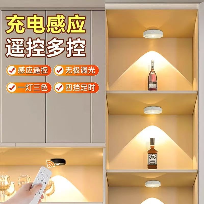 Led人体誘導小夜灯知能無線磁気吸引円形誘導灯戸棚階段通路充電壁灯