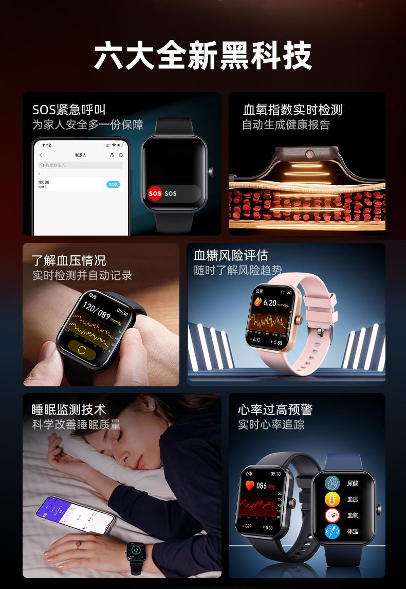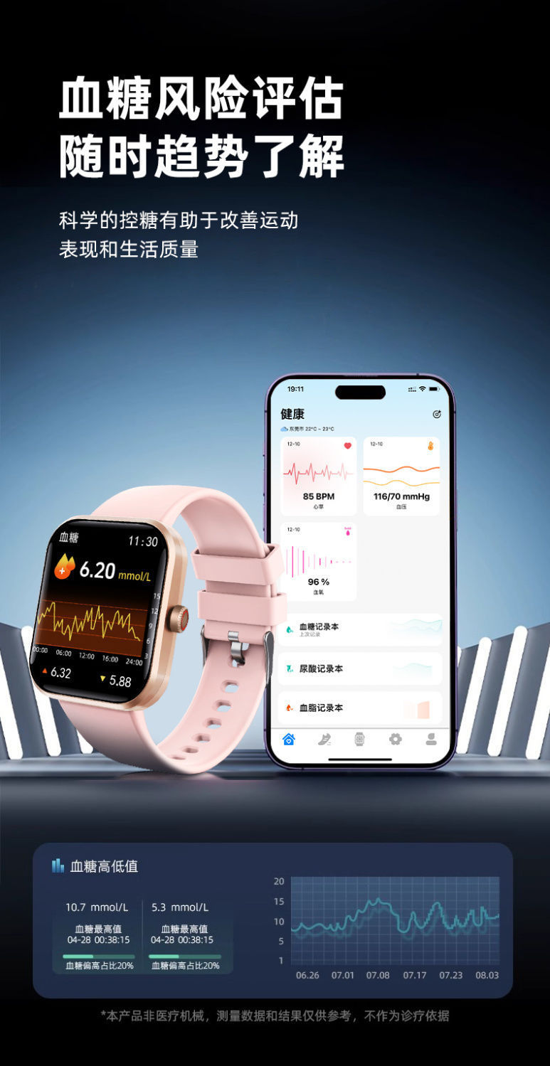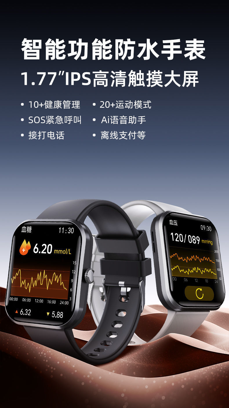华强北游泳级防水高智能手表测糖精度无创血糖手环测血压尿酸心率