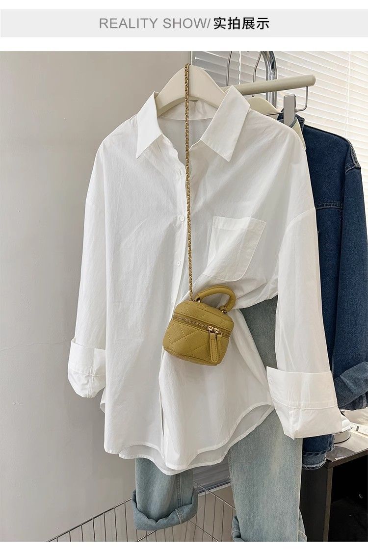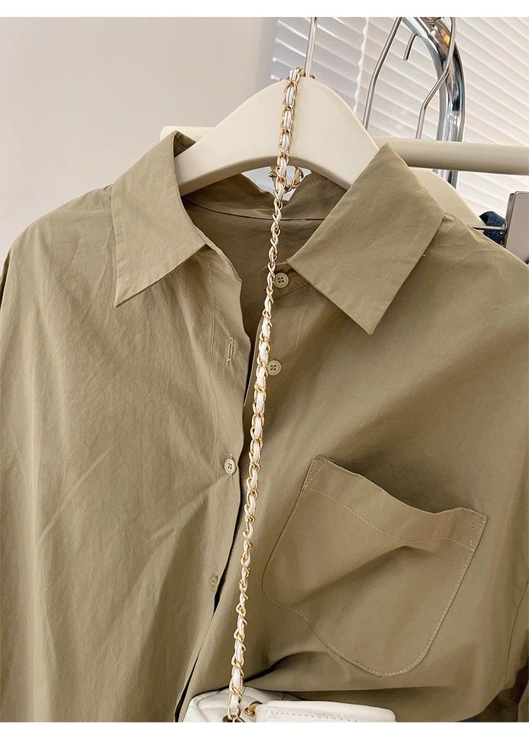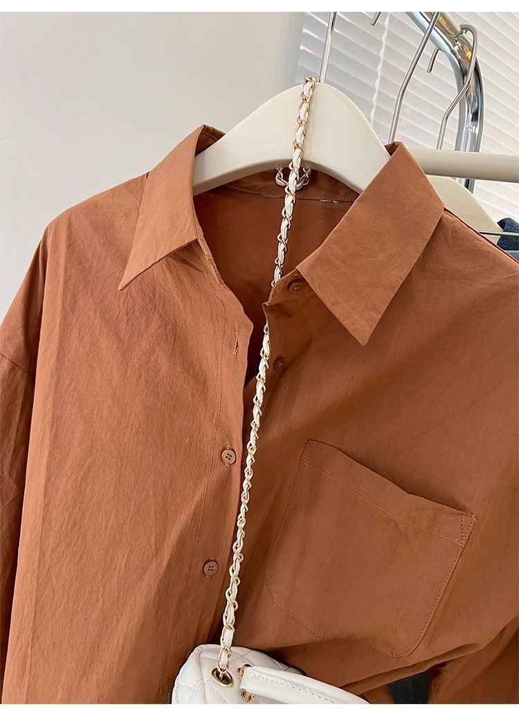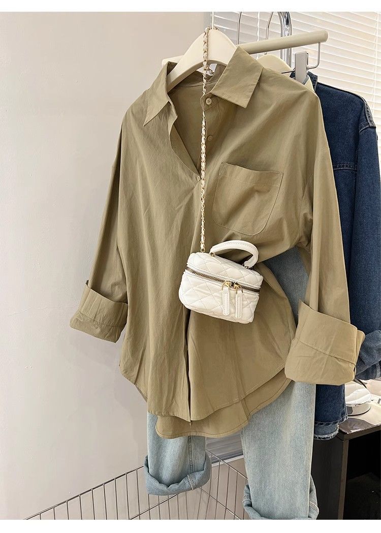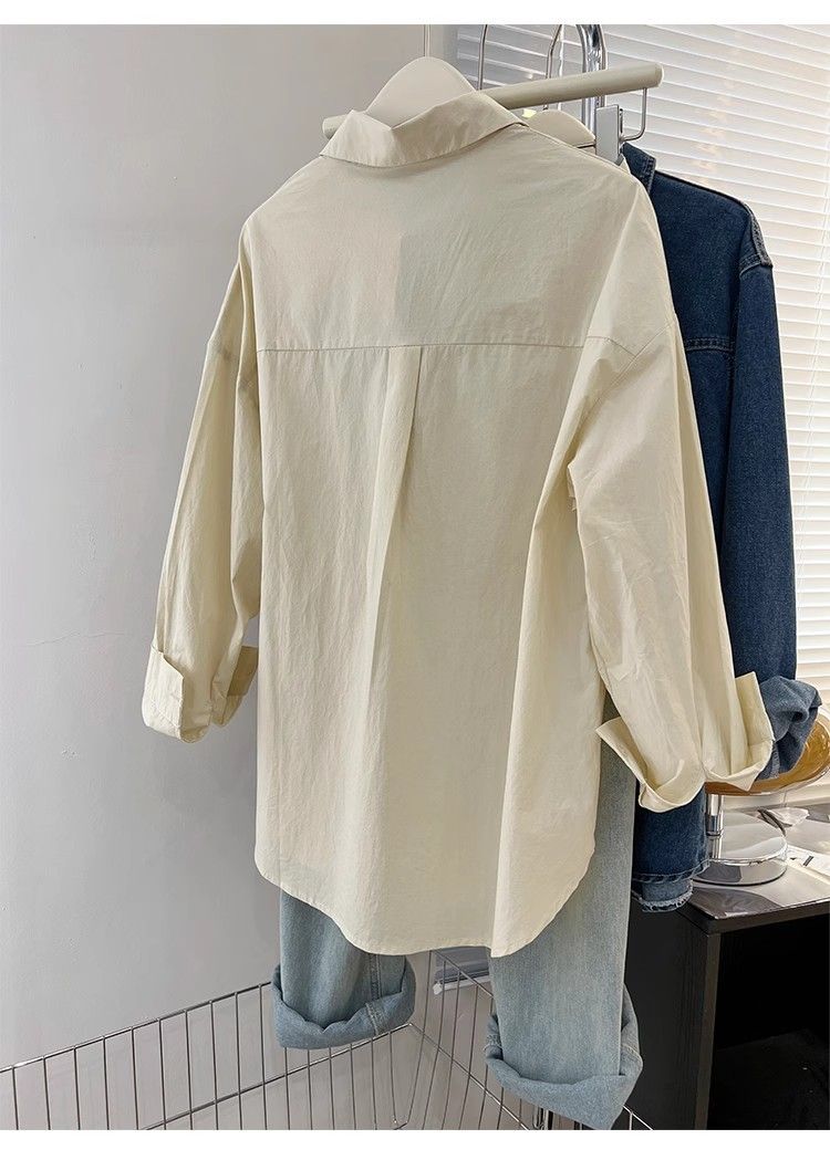 蓝色衬衫女春秋2025新款设计感小众休闲宽松叠穿长袖衬衣外套上衣