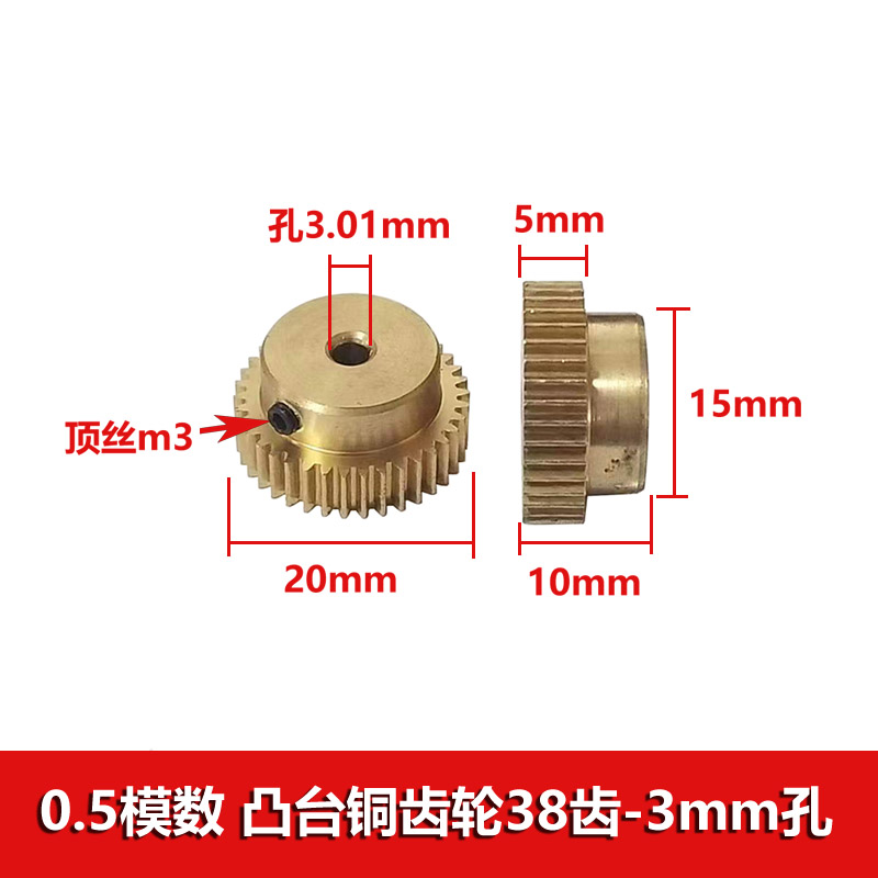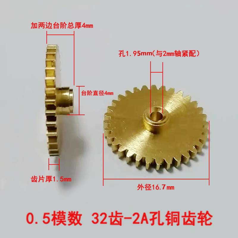 铜齿轮8齿1.45mm孔1个,铜齿轮8齿1.95mm孔1个,铜齿轮9齿1.95mm孔1个,铜齿轮10齿1.45mm孔1个,铜齿轮10齿1.95mm孔1个,铜齿轮10齿2.25mm孔1个,铜齿轮10齿2.95mm孔1个,铜齿轮11齿3.12mm孔1个,铜齿轮12齿1.95mm孔1个,铜齿轮12齿2.25mm孔1个,铜齿轮12齿3.12mm孔1个,铜齿轮14齿2.45mm孔1个,铜齿轮14齿3.12mm孔1个,铜齿轮15齿2.95mm孔1个,铜齿轮16齿1.95mm孔1个,铜齿轮16齿2.95mm孔1个,铜齿轮16齿4.95mm孔1个,铜齿轮18齿1.95mm孔1个,铜齿轮20齿3.95mm孔1个,凸台铜齿轮20齿5mm孔1个,铜齿轮24齿2.55mm孔1个,铜齿轮26齿2.02mm孔1个,铜齿轮32齿1.95mm孔1个,凸台铜齿轮30齿3.01mm孔松配1个,凸台铜齿轮32齿3mm孔松配1个,凸台铜齿轮38齿3.01mm孔松配1个,铜蜗杆6*10*2mm孔1个,铜蜗杆7.5*14*3mm孔1个,粉末冶金齿轮16齿2.95mm孔1个,粉末冶金斜齿轮14齿2.95mm孔1个,钢齿轮40齿6.03mm孔1个,铜齿轮34齿3mm孔1个,0.5模钢齿条9.9cm 长1个,0.5模钢齿条14.9cm 长1个,0.5模钢齿条19.9cm 长1个,钢齿轮24齿3.99mm孔1个