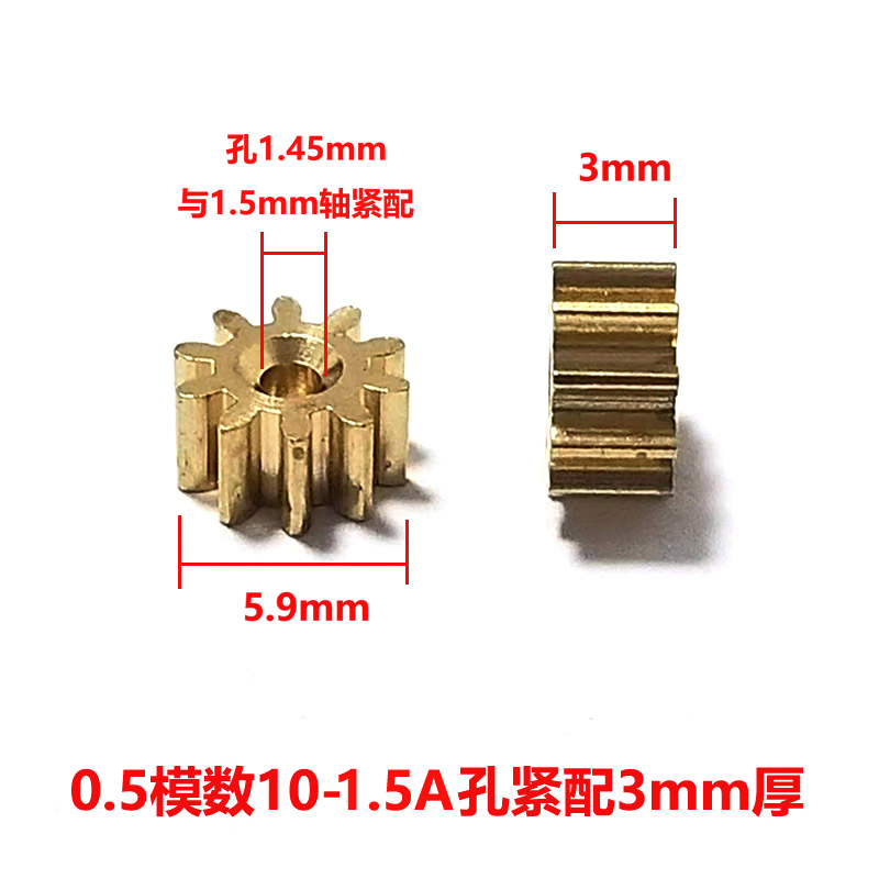 铜齿轮8齿1.45mm孔1个 铜齿轮8齿1.95mm孔1个 铜齿轮9齿1.95mm孔1个 铜齿轮10