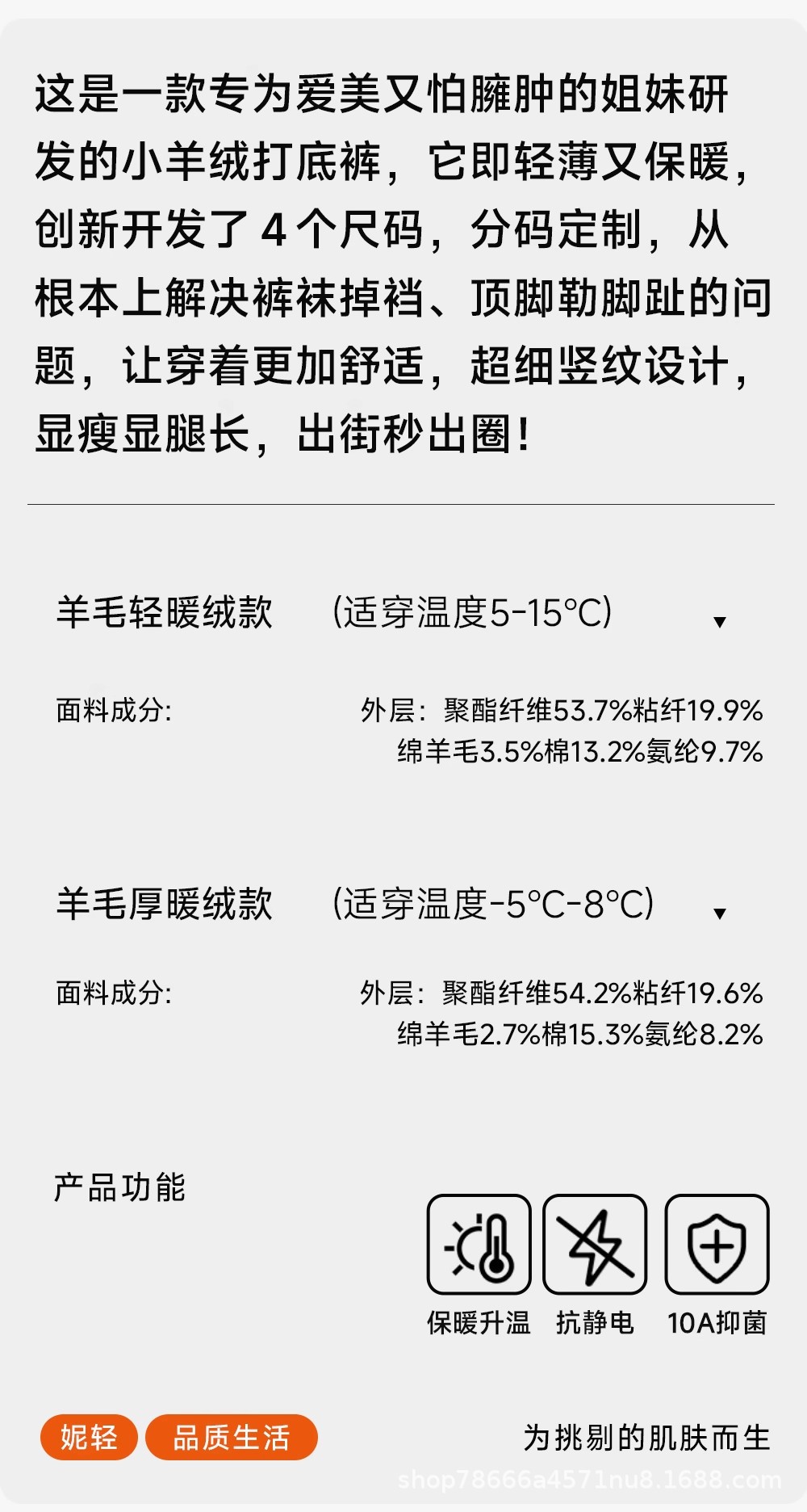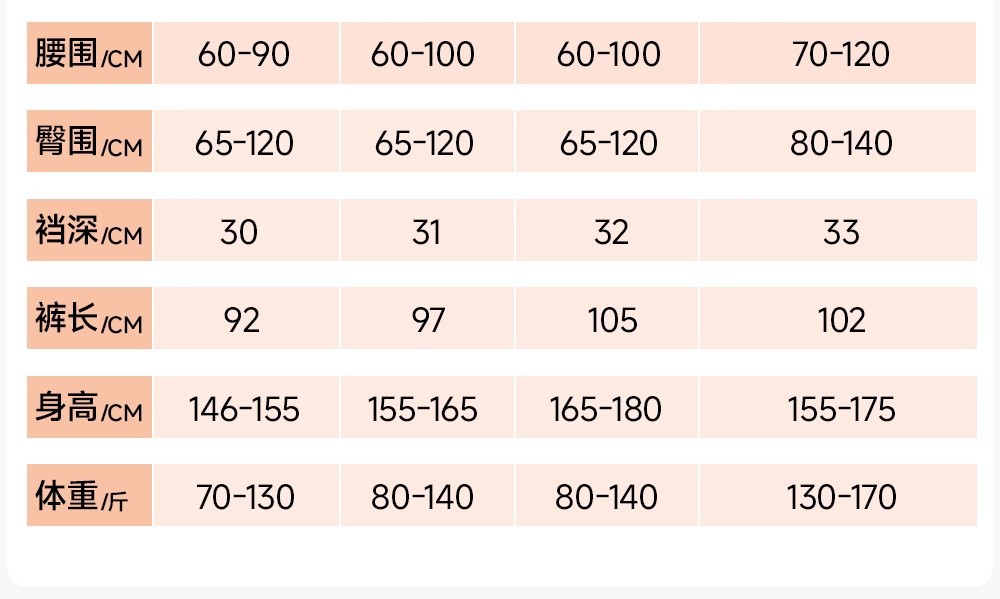 尺码 正常M连脚(155-165CM,80-140斤),正常M踩脚(155-165CM,80-140斤),小个子S连脚(145-155CM,70-130斤),小个子S踩脚(145-155CM,70-130斤),定制加长L连脚(165-180CM,80-140斤),定制加长L踩脚(165-180CM,80-140斤),加大码XL连脚(155-175CM,130-170斤),加大码XL踩脚(155-175CM,130-170斤)