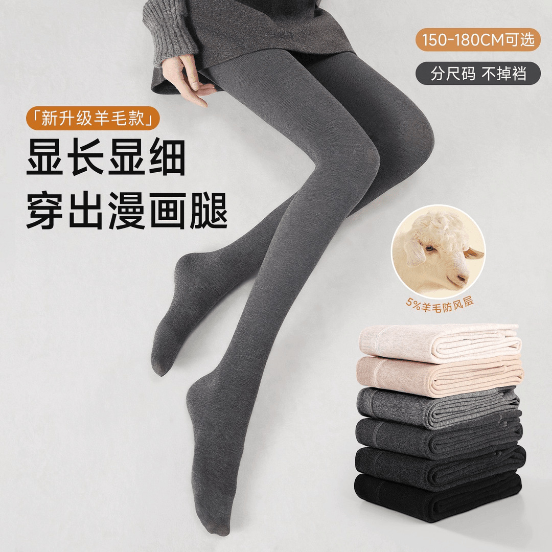 羊毛打底裤女秋冬薄绒加厚丝袜外穿保暖压力显瘦腿燕麦白连裤袜