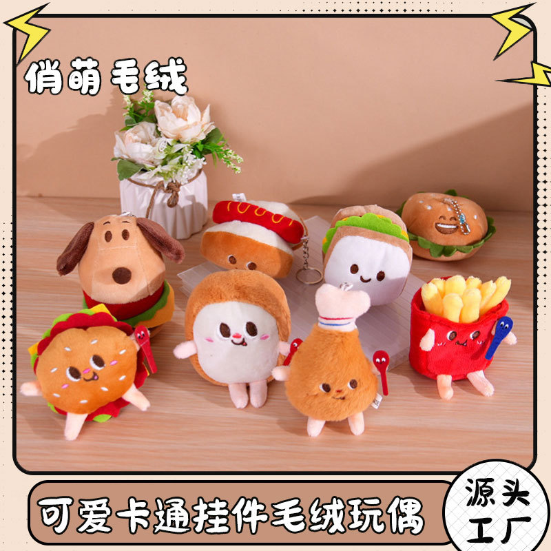 クリエイティブハンバーガーフライドポテトぬいぐるみカップルペンダントキーホルダー学生かわいい人形チキンレッグハンギングチェーンハンバーガーぬいぐるみ