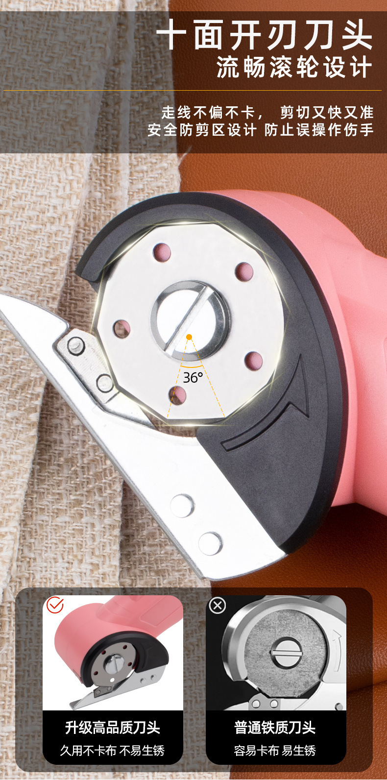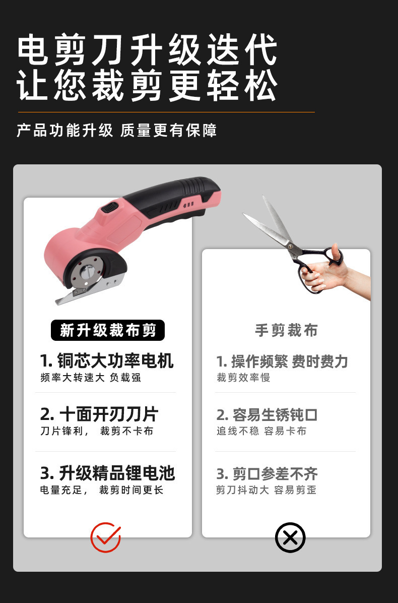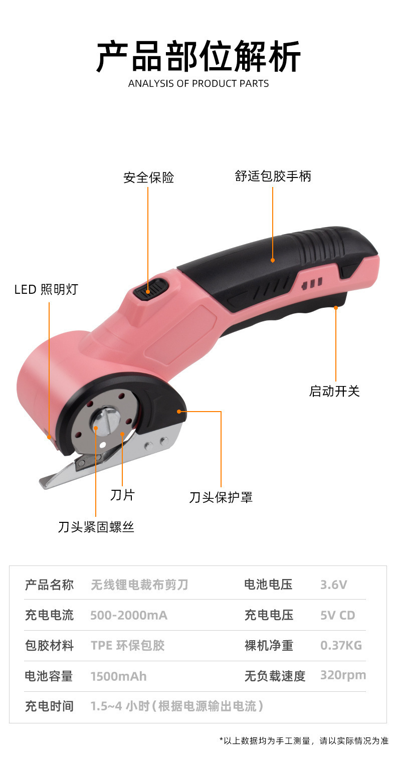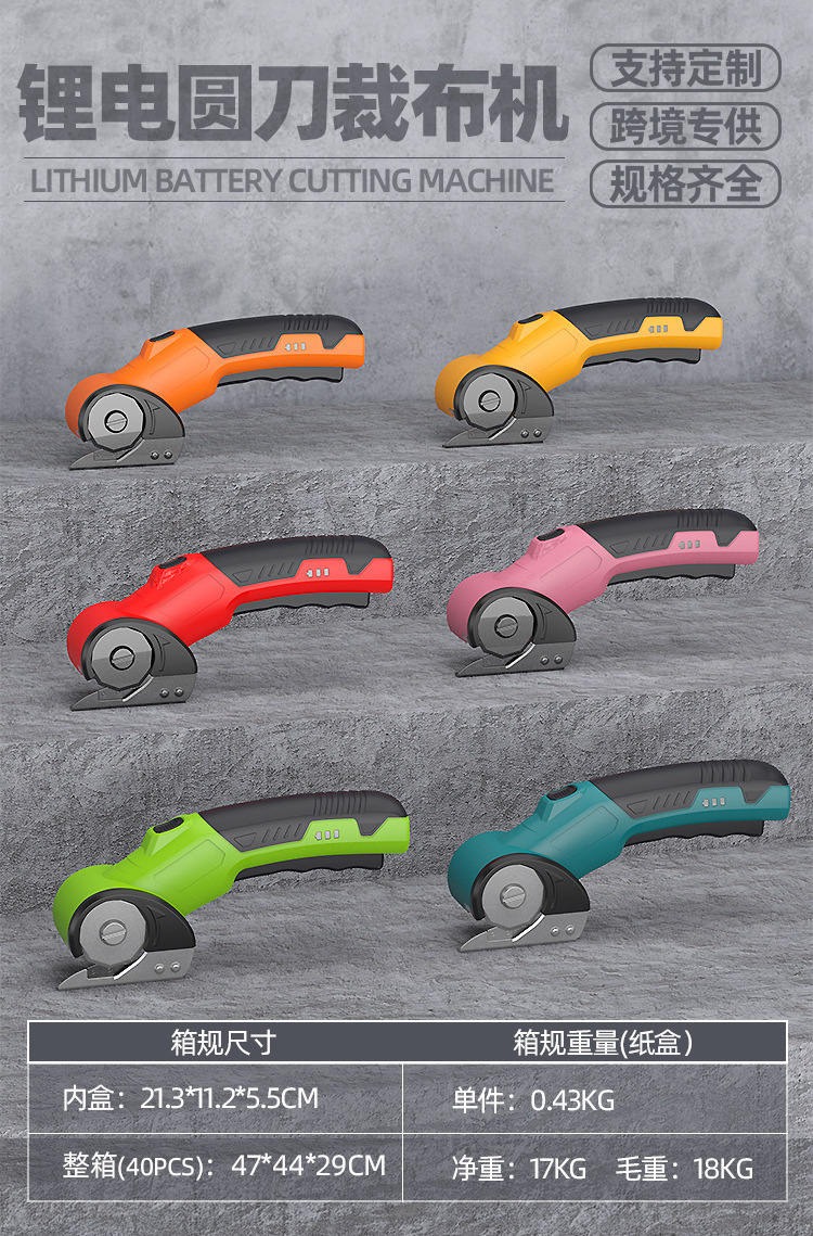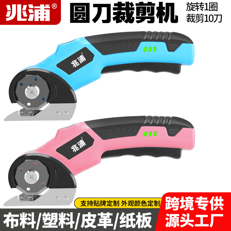 跨境充电式家用锂电裁布剪快速裁剪布料皮革剪电动圆刀裁剪机剪刀