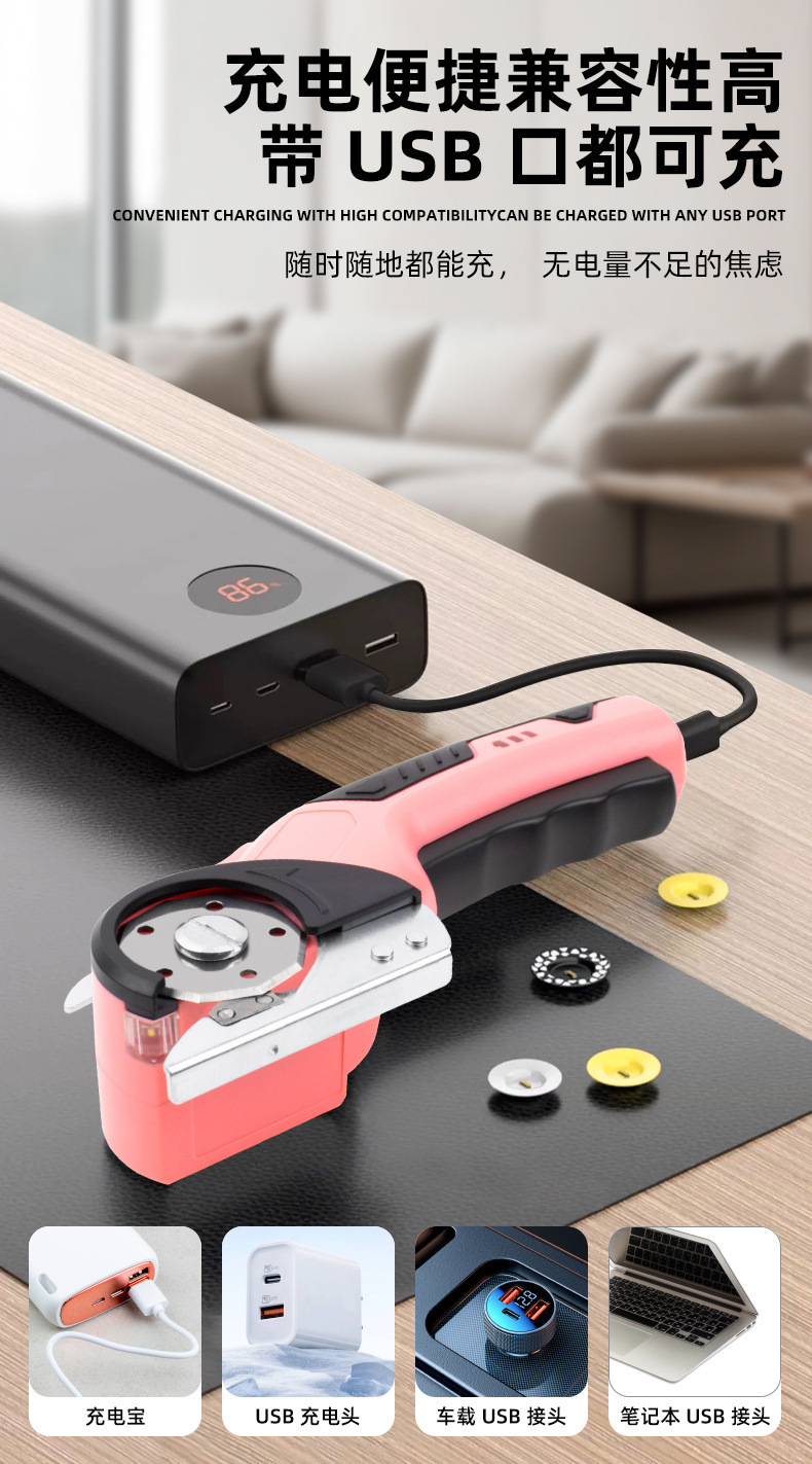 手持电剪刀电动剪布机裁剪器圆刀充电便携裁布机皮革布料切割神器