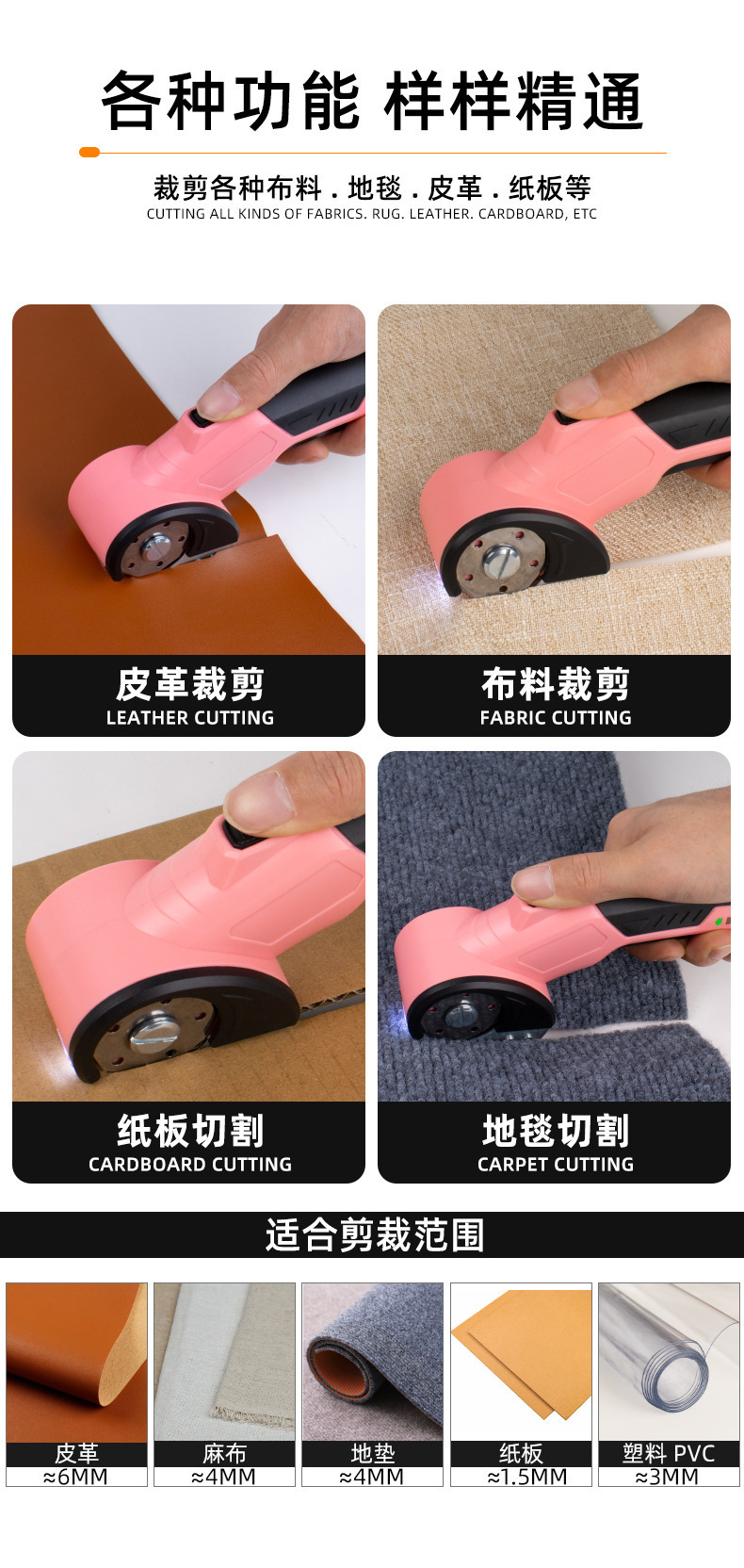 地毯剪裁布剪布料皮革电剪刀手持裁缝电剪子切布裁剪刀电动剪线