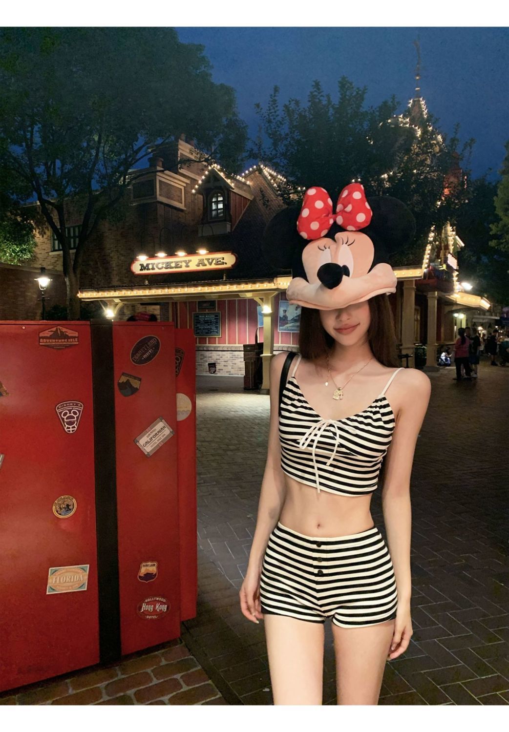 【自由休暇】ギャル純欲風紅白ストライプが白い海辺のリゾートビーチの分体水着ビキニ