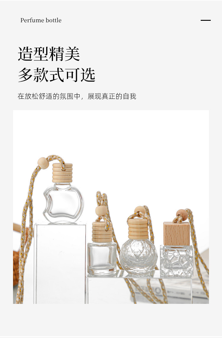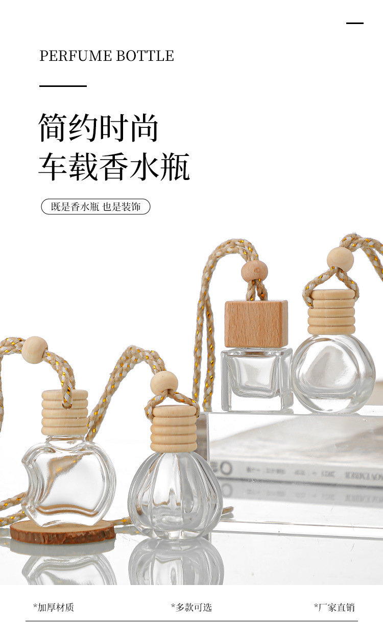 现货车载香薰瓶空瓶车内带绳挂件香氛挥发玻璃分装瓶透明瓶子批发